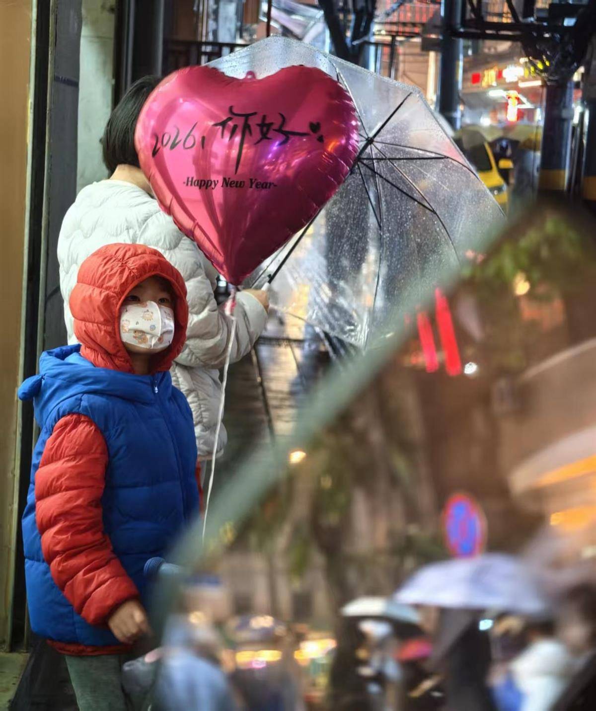 2026年1月1日,零点的钟声从百年江汉关的塔楼荡开,五彩气球随之腾空,汇入漫天光影。