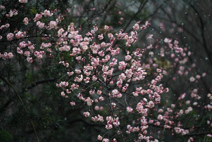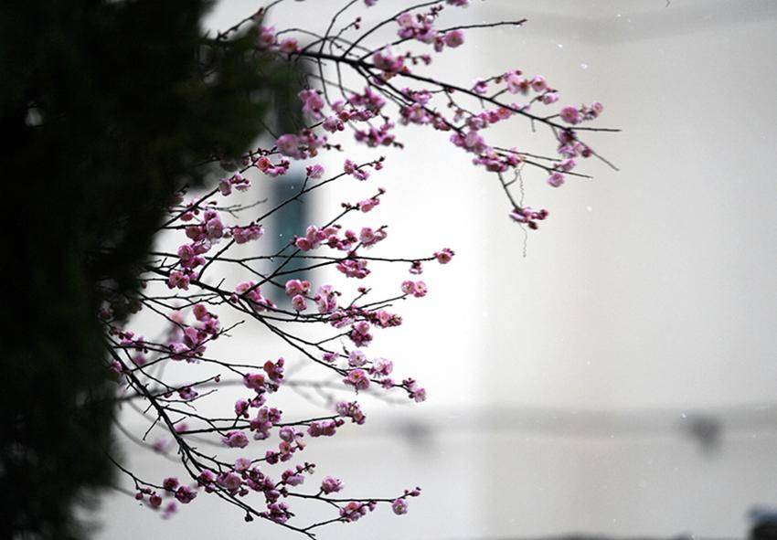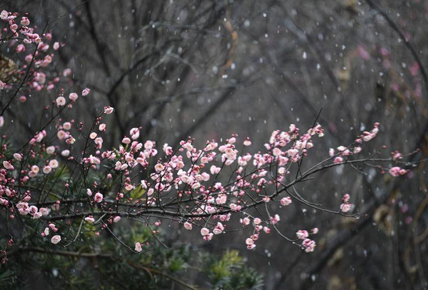 ▲▼保康县沿河景观公园的红梅迎雪绽放,为新年的到来增添一抹温馨的色彩。
