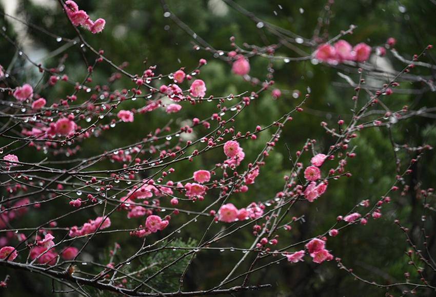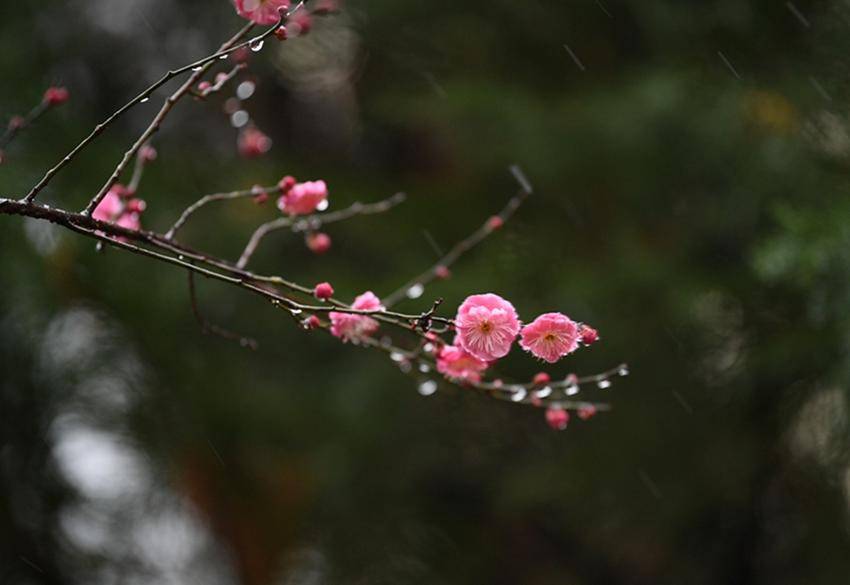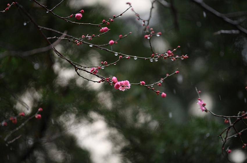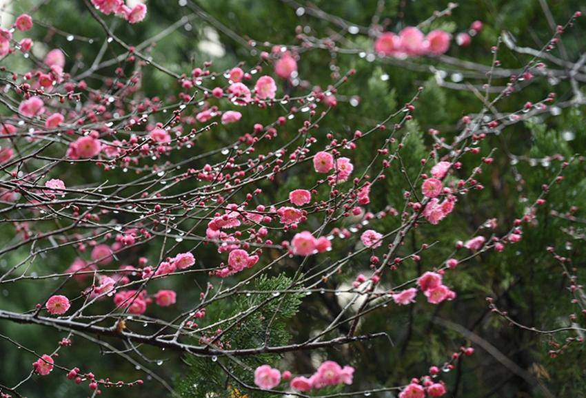 新年伊始,保康县沿河景观公园的红梅迎雪绽放,有的绽放芬芳,有的花骨朵上挂着水珠,有的好似刚从沉睡中苏醒,不惧风霜与严寒,含苞待放喜迎新年。(湖北日报客户端通讯员 陈泉霖 摄)