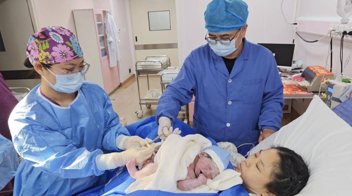 省妇幼街道口院区迎来首个新年宝宝。(受访单位供图)
