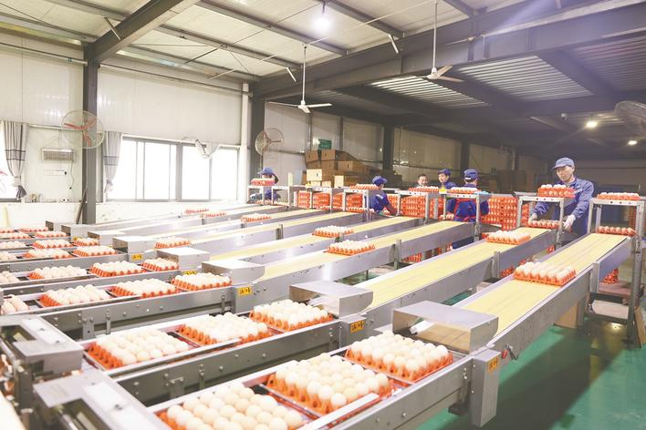 品牌赋能有力推动了产业链向深加工延伸。在上游饲料环节,全县7家企业设计总产能达160万吨,实际年产量近100万吨,规模稳居全省首位。通过供应链,打通国内外饲料原粮采购渠道,压缩原料成本;研发功能蛋、特色蛋专属饲料配方,推出“黄芪”“叶黄素”等饲料产品,同步提升养殖品质与加工效益。蛋品精深加工方面,引进中喜食品、禾美食材等重点项目,其中中喜食品采用丹麦全自动生产线,年加工蛋品9万吨,填补了鸡蛋精深加工空白;政仁堂、中深云仓等项目同步推进,逐步构建起从蛋液、蛋粉到蛋白粉、预制菜的完整加工体系。