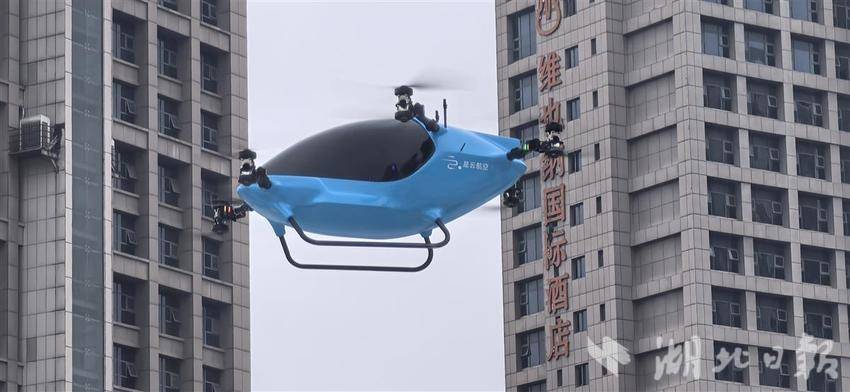 在位于武汉市汉阳区的汉阳造低空生态中心,在现场工作人员的操控下,由是云航空科技(武汉)有限公司研发生产的是云SW-ONE载人eVTOL腾空而起,在空中完成穿行、转圈等动作。