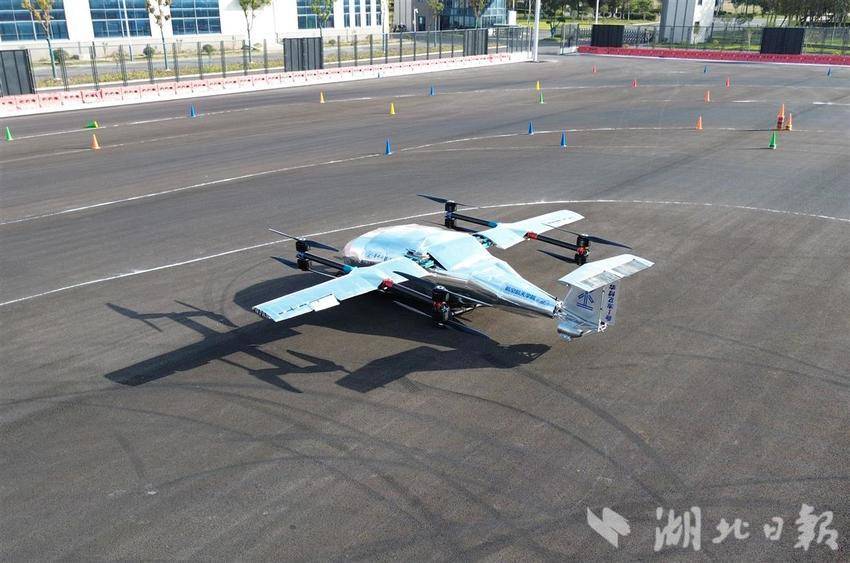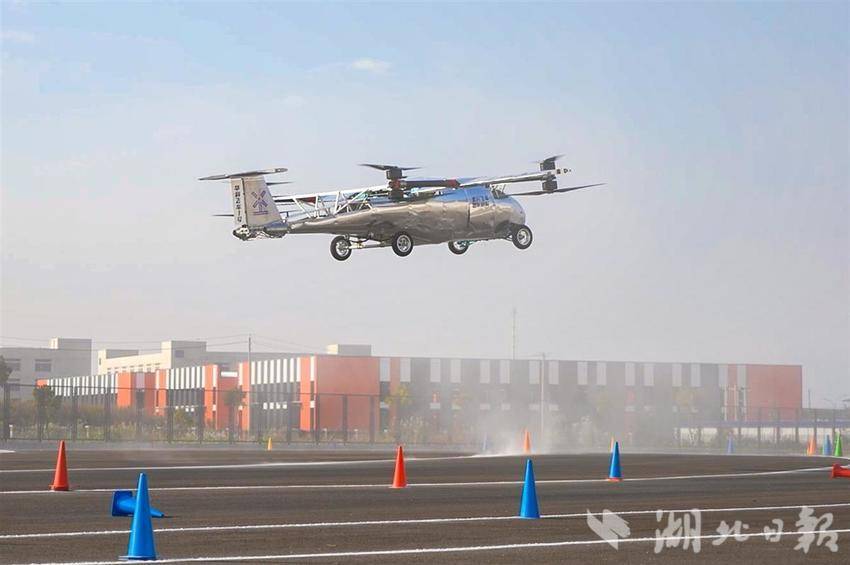 在仙桃国家高新区智能制造产业园,湖北日报全媒记者看到一款由华中科技大学航空航天学院团队与仙桃市政府联合研发的飞行汽车。