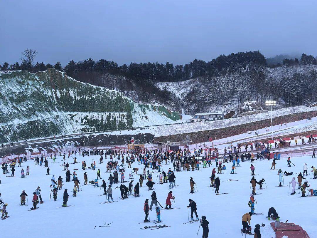 黄冈英山桃花冲滑雪场迎来大批雪友