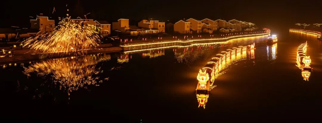当晚,参加2026第三届沔商大会的沔商代表走进袁市村观赏新年灯会,在一河两岸的流光溢彩中,实地感受仙桃农文旅体融合发展“丰”景。沿河露台上,古风舞蹈舒展衣袖,喷火表演映红水面,非遗打铁花如星雨倾泻。
