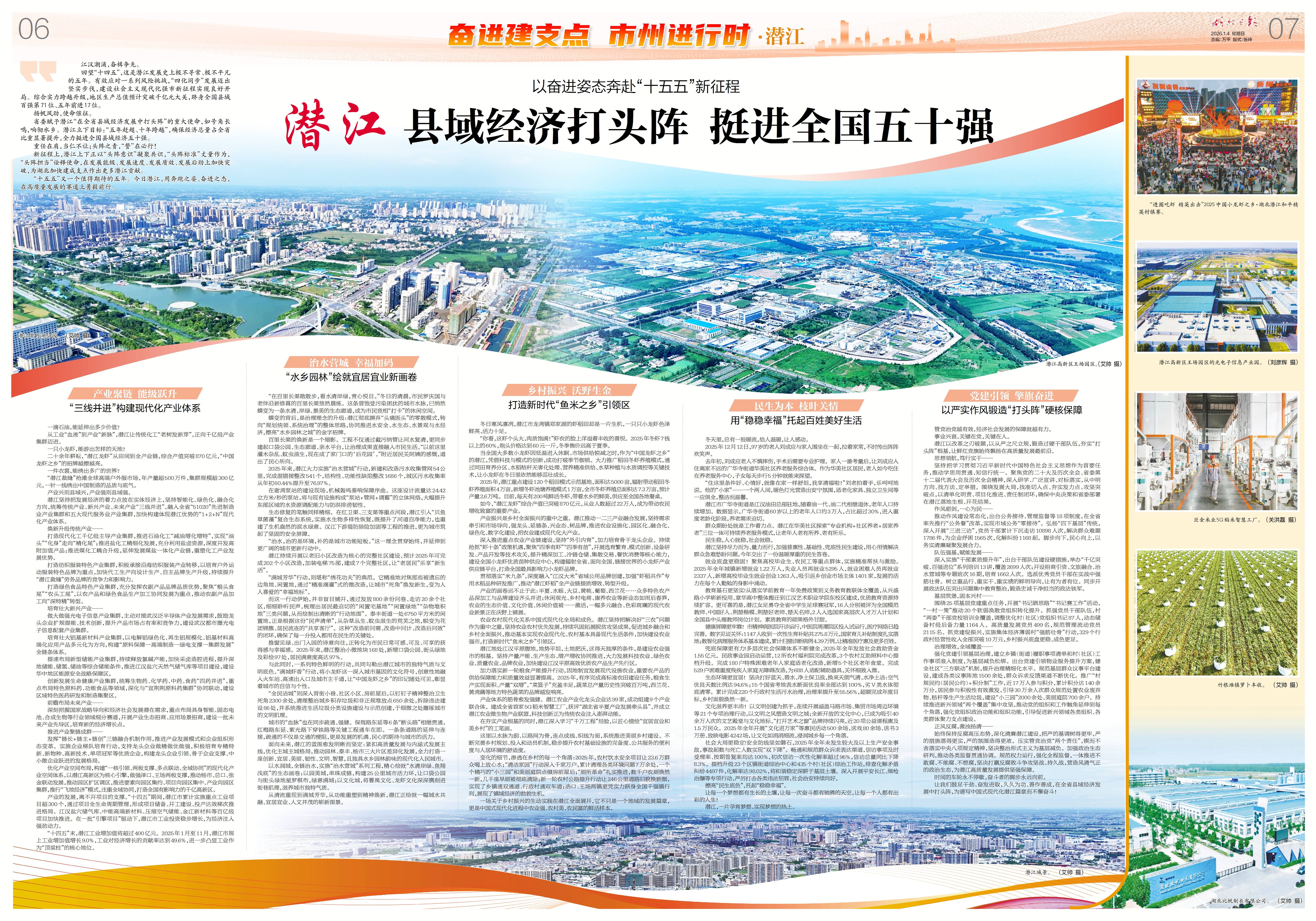 如今,站在“十四五”收官与“十五五”启航的交汇点,潜江被省委赋予“在全省县域经济发展中打头阵”的使命。2025年12月8日,潜江市委九届十一次全会擘画蓝图:“五年赶超、十年跨越”,剑指全国县域经济50强。