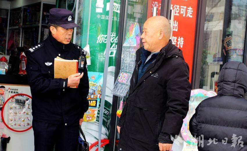 湖北日报讯(通讯员张萍)“元旦节日期间,骗子们以机票退改签为幌子,诱导群众落入其诈骗圈套频现,大家要注意识别和防范。”连日来,武汉市公安局东西湖区分局长青街派出所华星社区警务室组织民警、江城义警队员走村串户,深入片区村湾、居民区及商圈,帮助群众、商户识别和防范元旦节日期间机票退改签的诈骗套路,精心呵护好居民群众及商户资金安全。