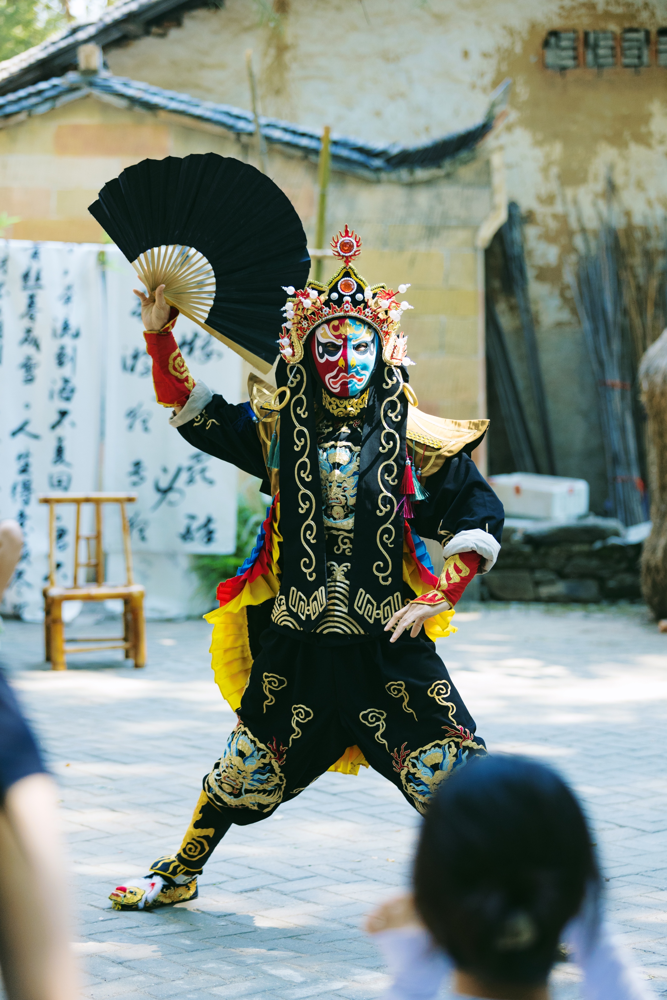 压轴登场的川剧变脸更是惊艳全场,脸谱瞬息万变,绝技一出,满场叫好声此起彼伏,古村里处处都洋溢着欢乐的节日氛围。