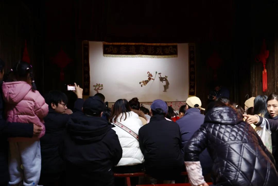 非遗皮影戏幕布后,艺人巧手翻飞,惟妙惟肖的皮影人物演绎着经典故事,让大人小孩都看得流连忘返。
