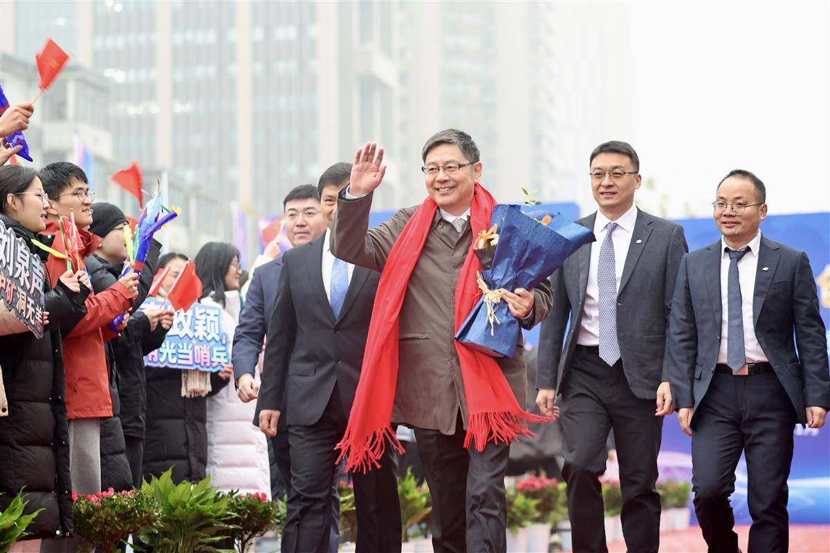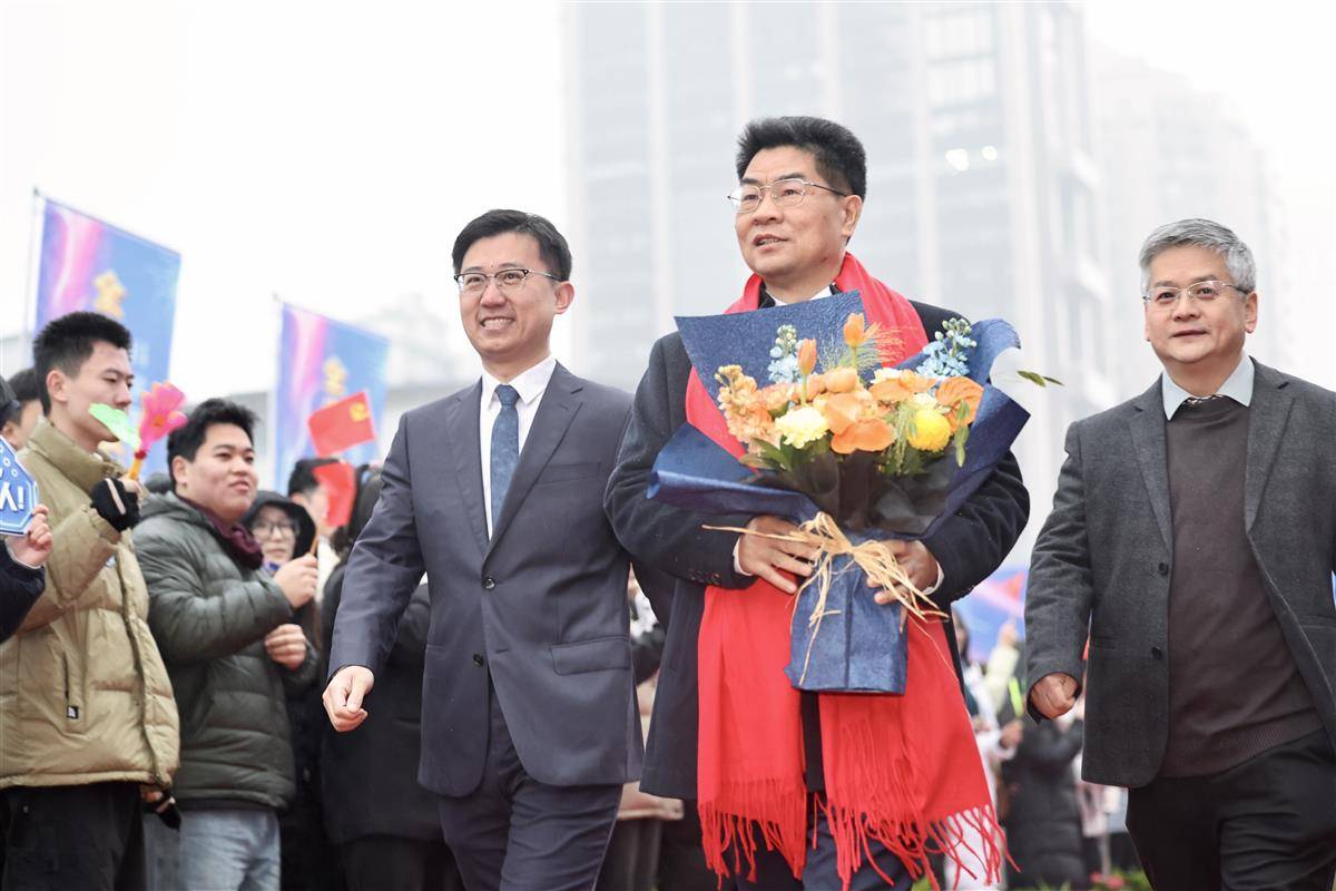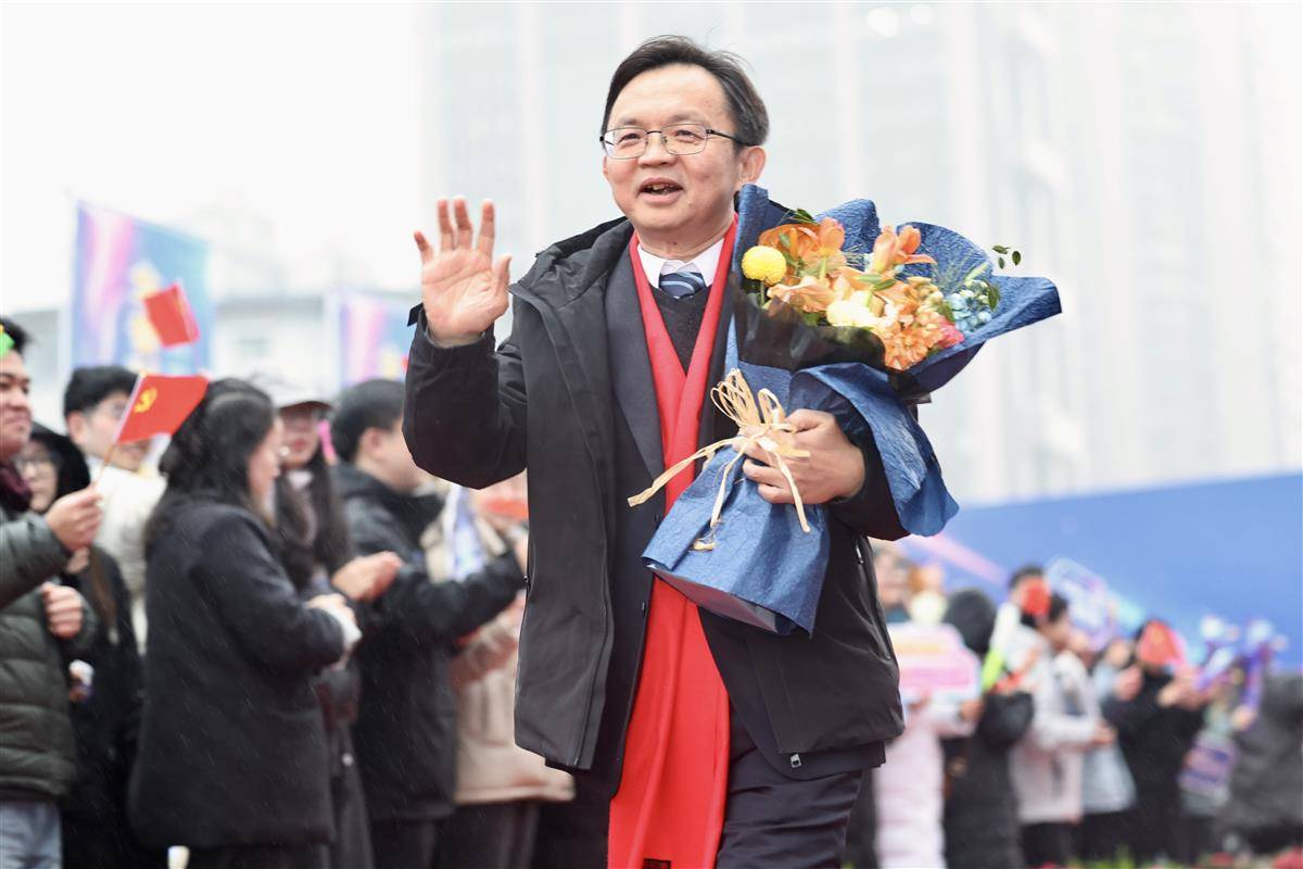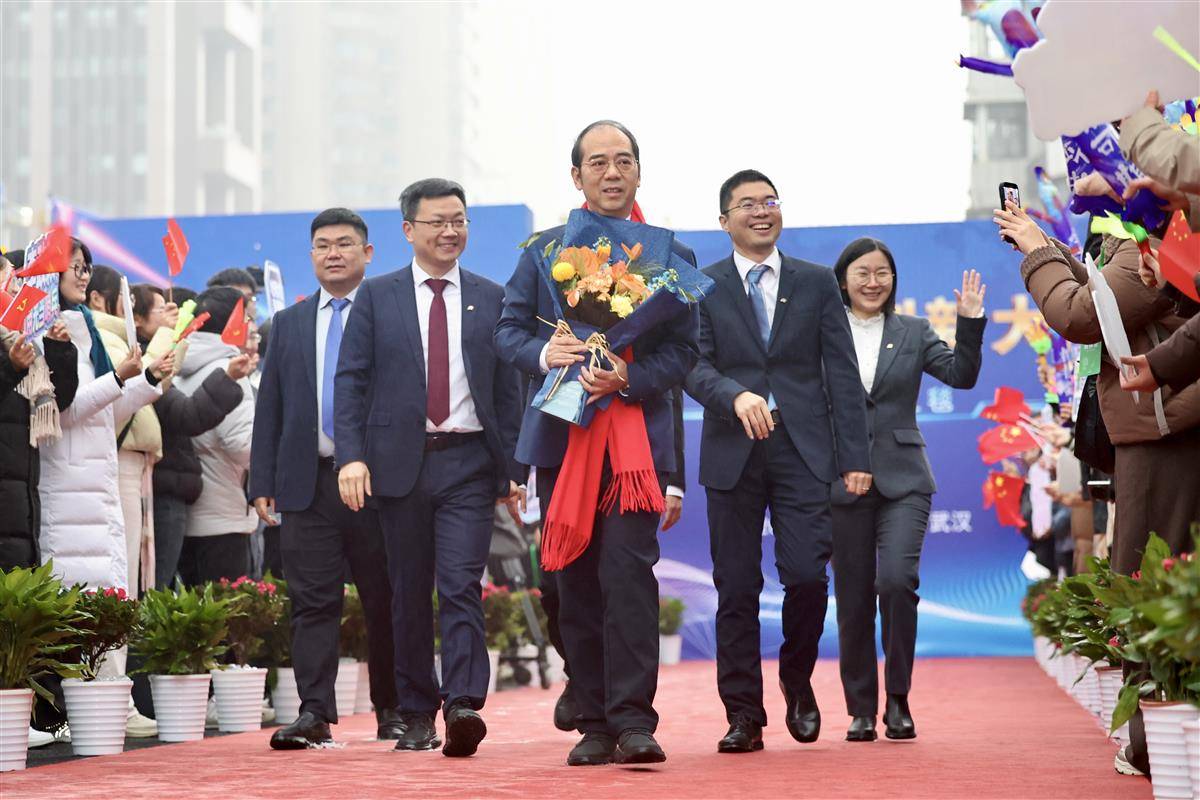 2026年1月4日,2026湖北省科技创新大会科学家走红毯现场,华中科技大学教授、数字制造装备与技术国家重点实验室主任,2025年新当选中国科学院院士尹周平携团队成员走上红毯。(湖北日报全媒记者 何宇欣 摄)