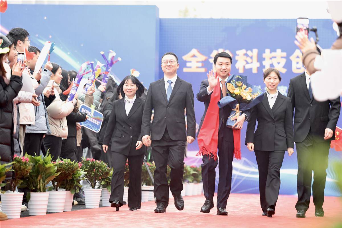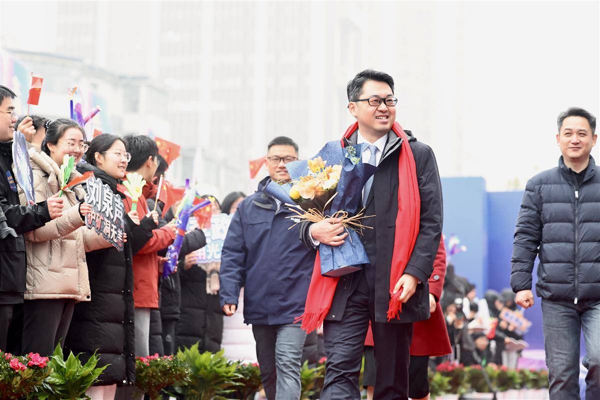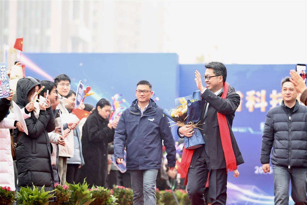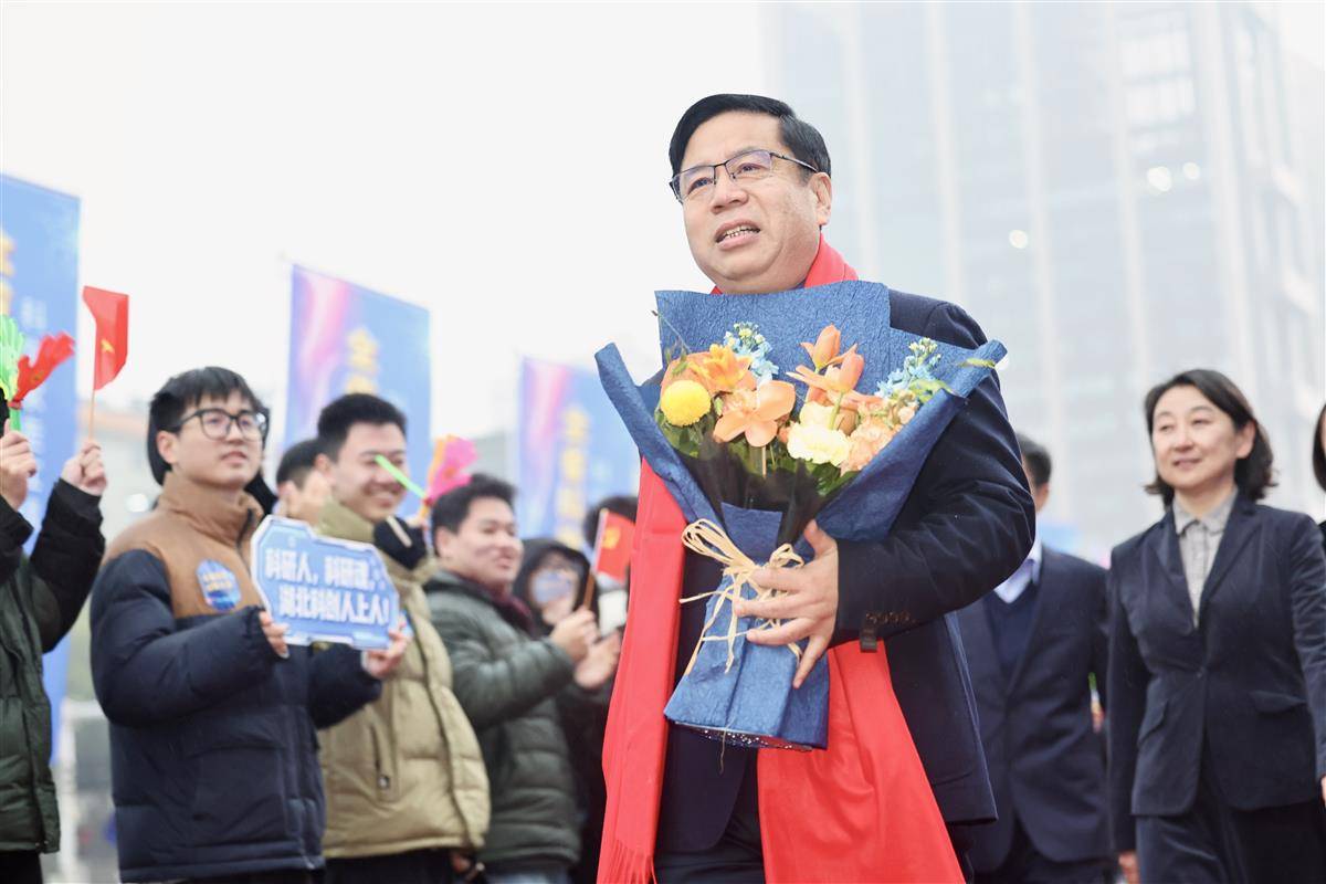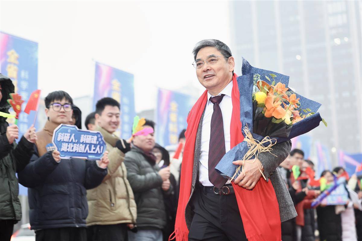 2026年1月4日,新年首个工作日!2026湖北省科技创新大会在武汉洪山礼堂举行,12位科学家走上红毯,众多市民手持鲜花、挥舞国旗夹道欢迎这群最可爱的人。(湖北日报全媒记者 何宇欣 实习生 苏熙智 摄)