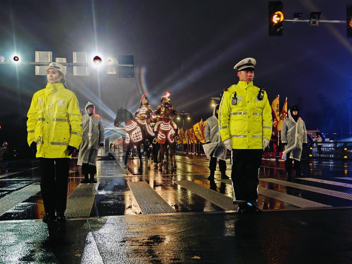 寒风中,每一个关键的路口、每一条熙攘的街巷,一抹抹交警制服的荧光绿始终默默伫立,为这场穿越时空的盛宴写下坚实的平安注脚。