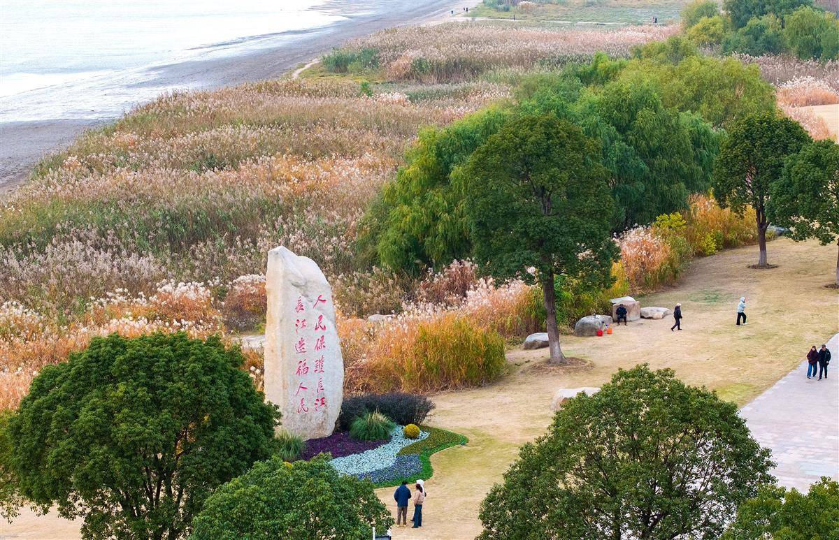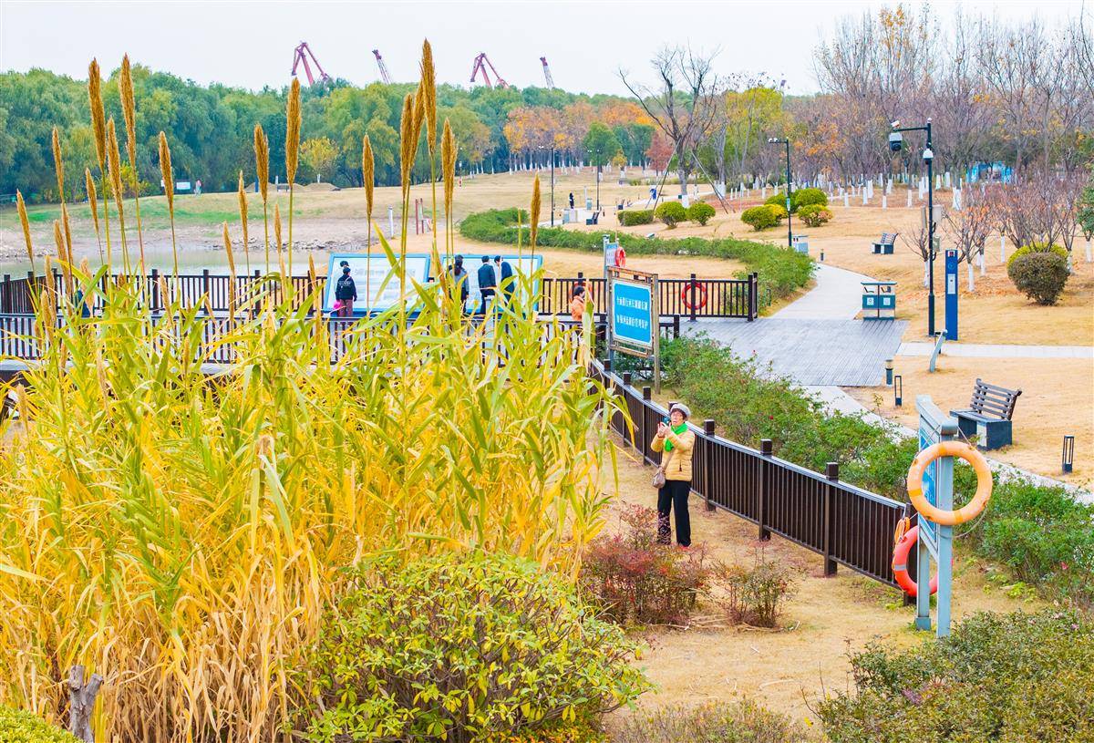2025年12月2日,游客在马鞍山芦苇江湾漫步。(湖北日报全媒记者 柯皓 摄)
