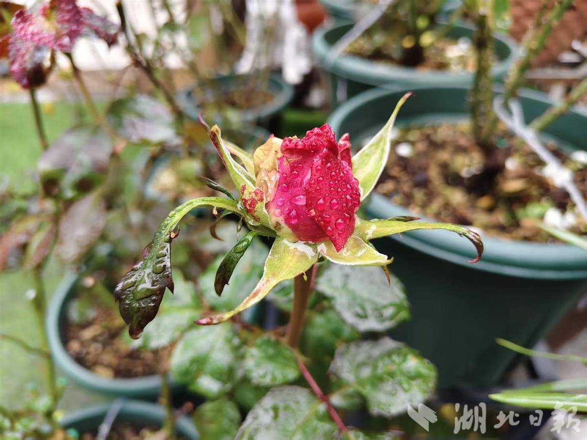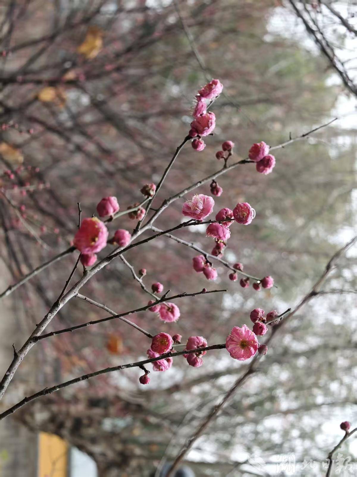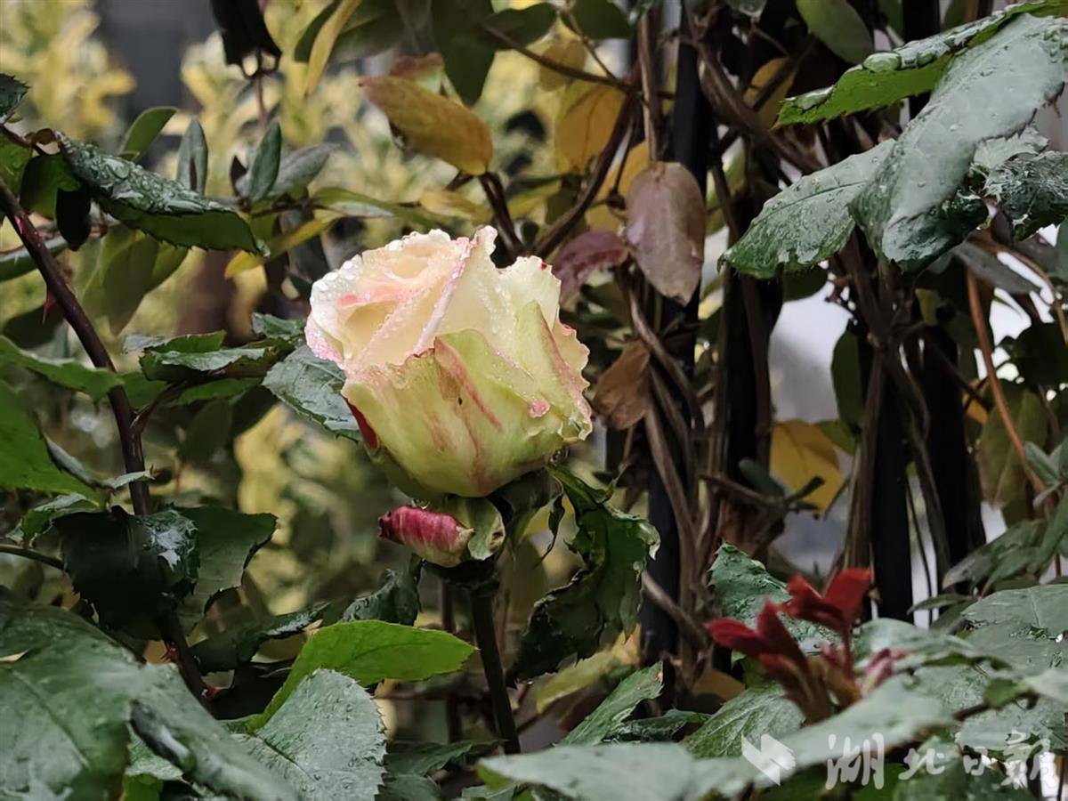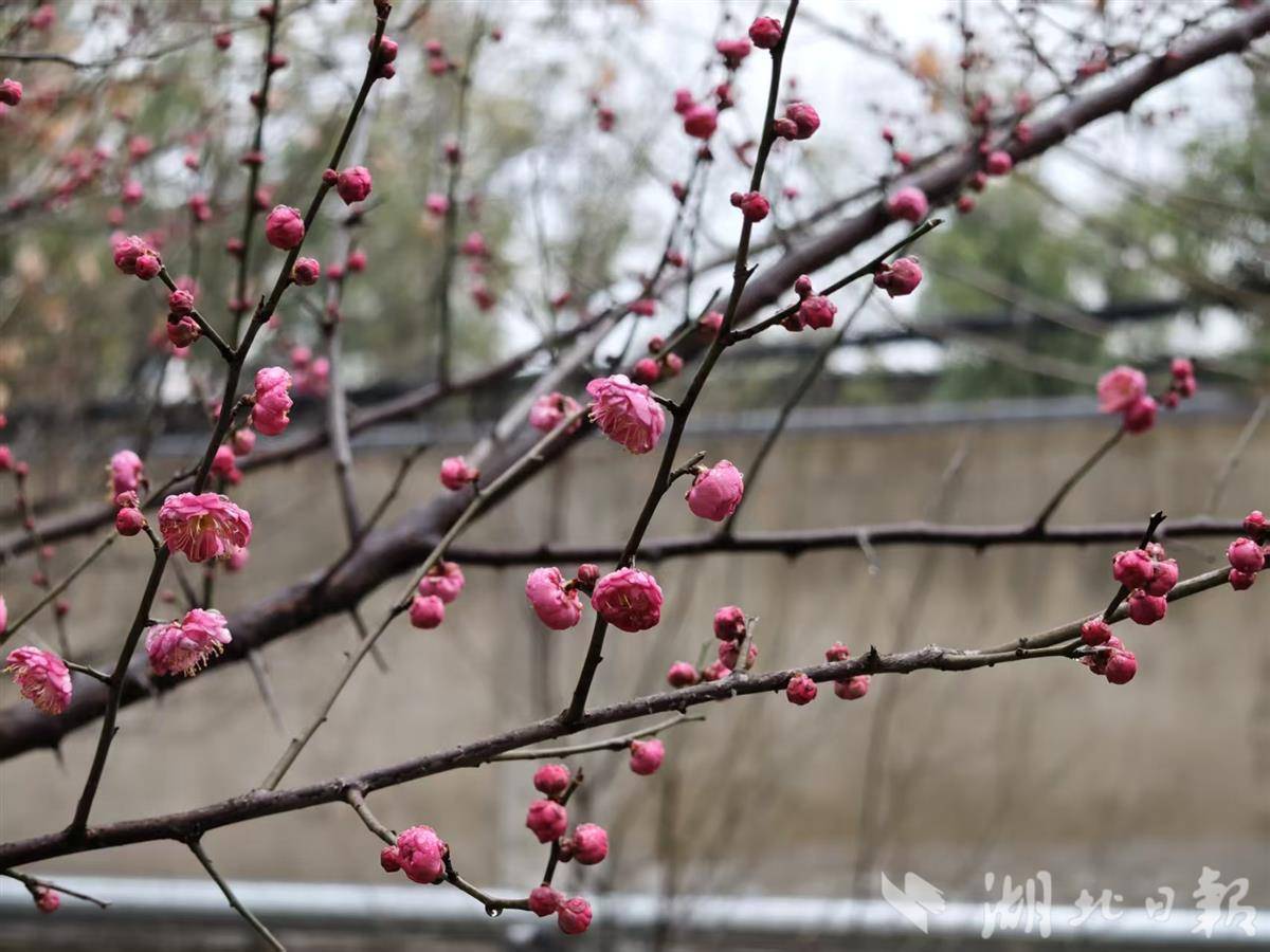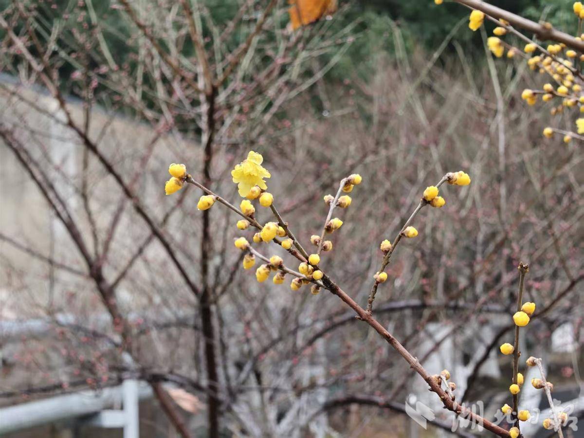 记者寻芳湖北日报传媒集团家属大院,发现红梅果然提前报春吐蕊,与蜡梅争艳。在寒风冷雨中,蜡梅含露,红梅凝珠,黄红交映,别是一番风味,令人不由得驻足赏玩。难得的是,小区居民种植的菊花仍然怒放,月季娇艳欲滴,红艳艳的三角梅与山茶花正在比拼,这真是一个别样的冬季呵。