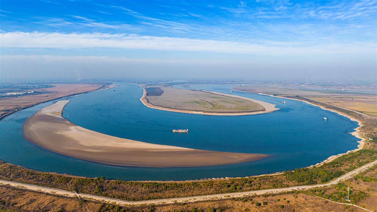 2025年11月30日,湖南岳阳市君山区江豚湾景区一带,江水澄澈,天空湛蓝。昔日喧嚣的砂石码头,如今已成为江豚嬉戏的胜地。(湖北日报全媒记者 任勇 摄)