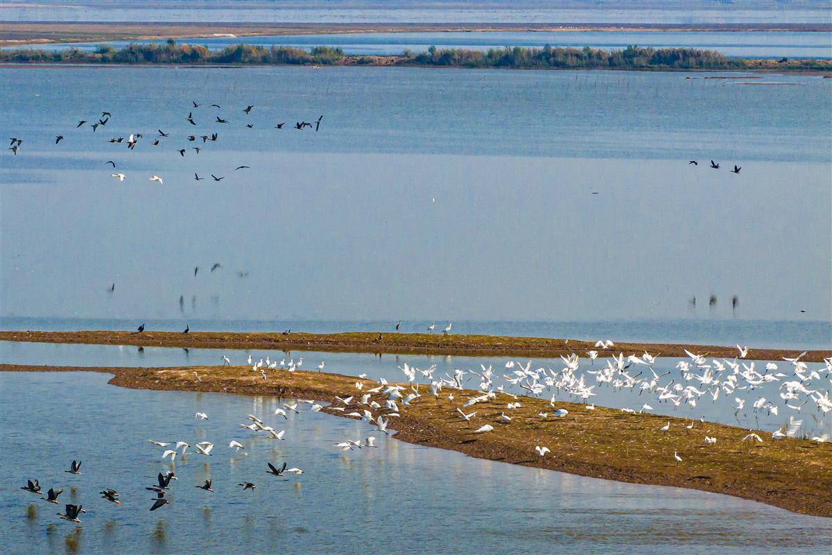 2025年11月30日,湖南岳阳洞庭湖浅水区域变身候鸟的栖息乐园。(湖北日报全媒记者 任勇 摄)