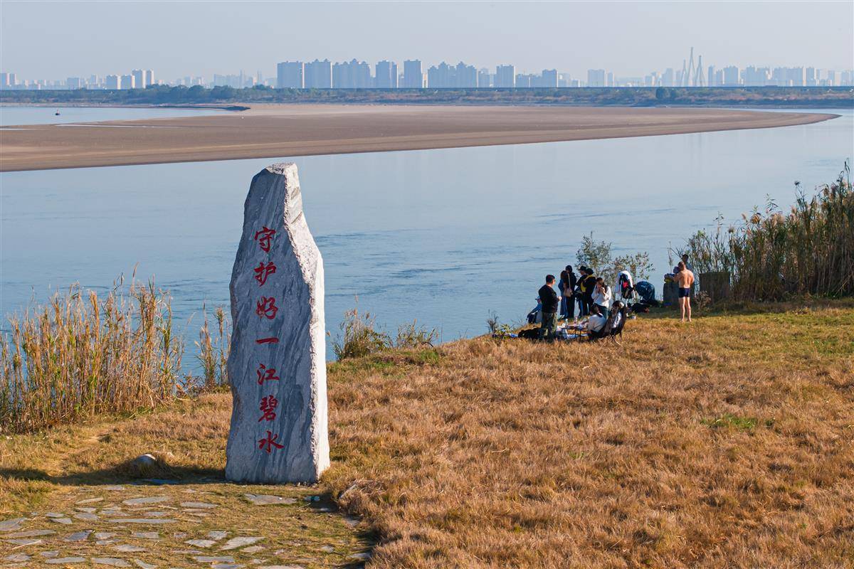 2025年11月30日,在湖南岳阳市君山区江豚湾景区,江边竖立的石碑上刻着“守护好一江碧水”的字样。(湖北日报全媒记者 任勇 摄)