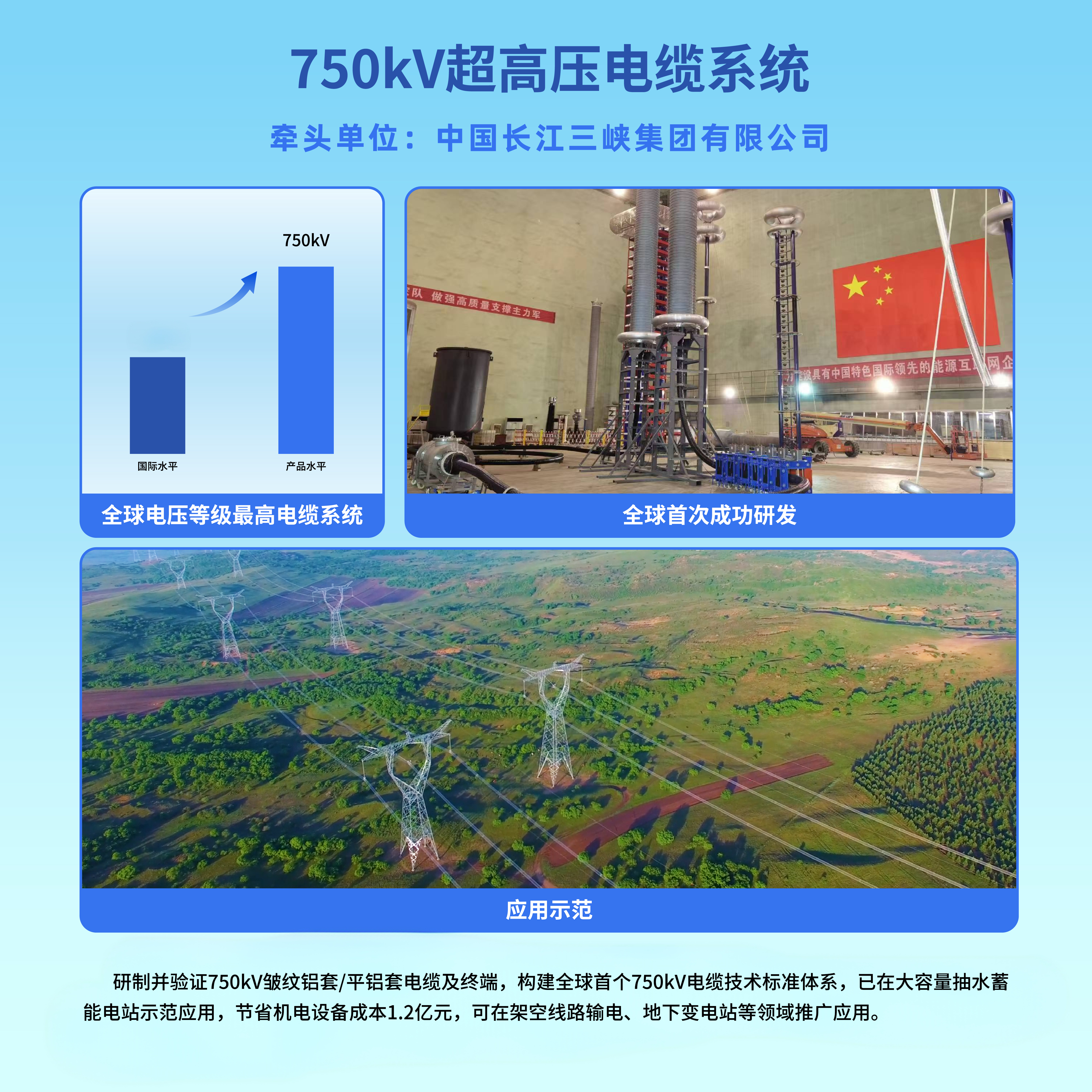 8. 750kV超高压电缆系统:全球首次研制成功并通过试验,填补领域空白。