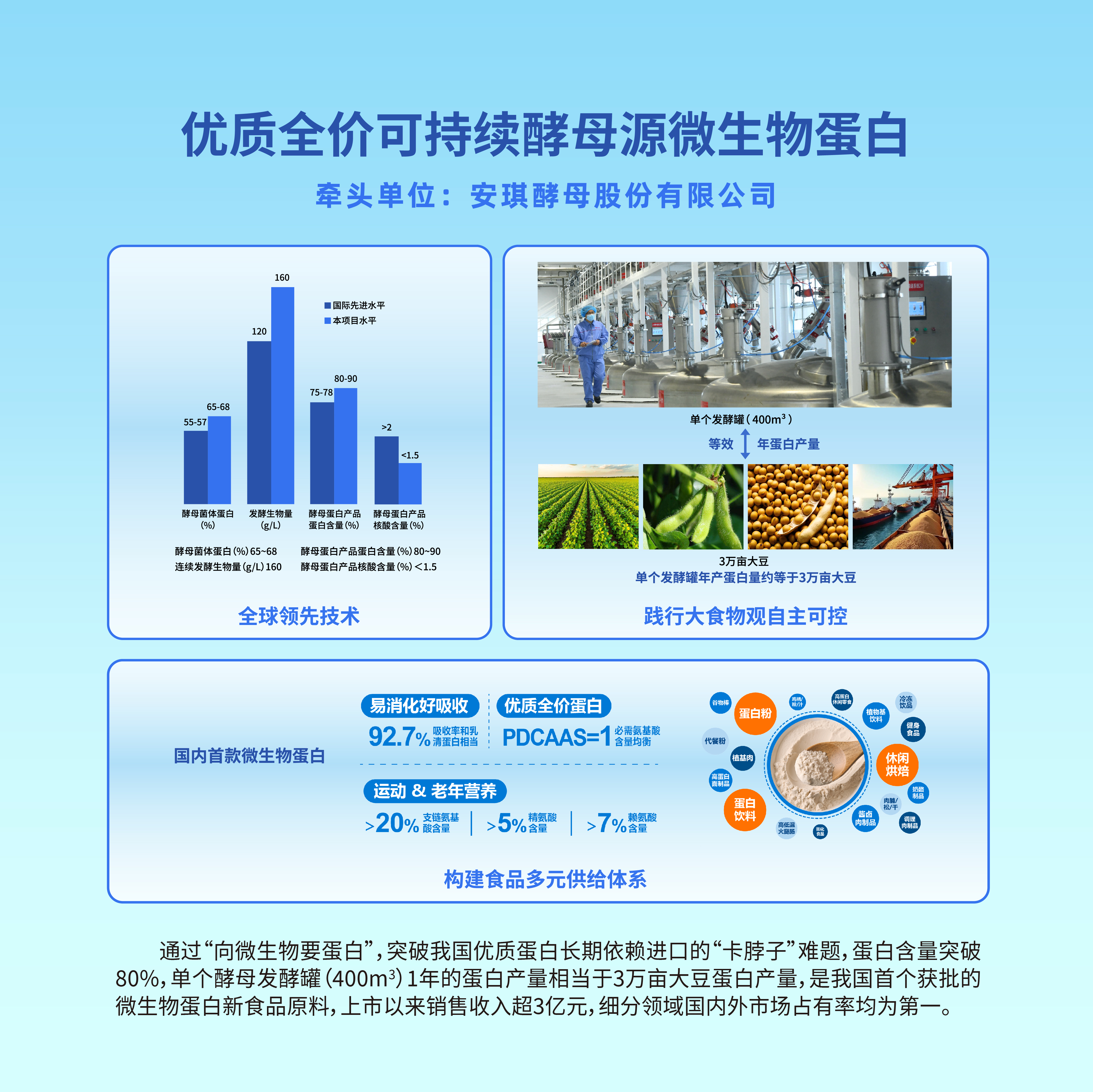 19.优质全价可持续酵母源微生物蛋白:蛋白含量突破80%的可持续优质蛋白新食品原料。
