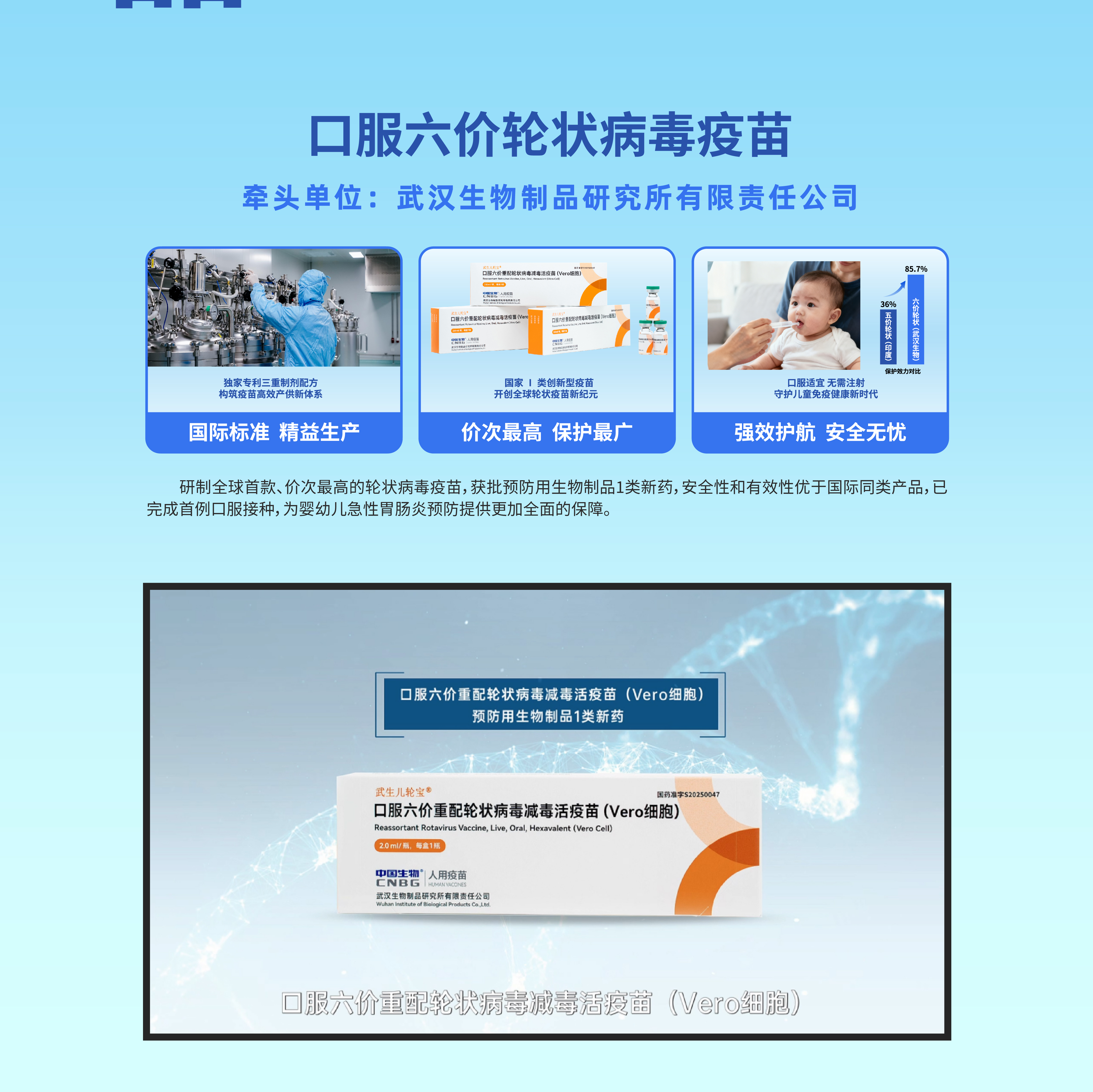 12.口服六价重配轮状病毒减毒活疫苗(Vero细胞):国际首创六价轮状病毒疫苗,覆盖我国99.6%流行型别。