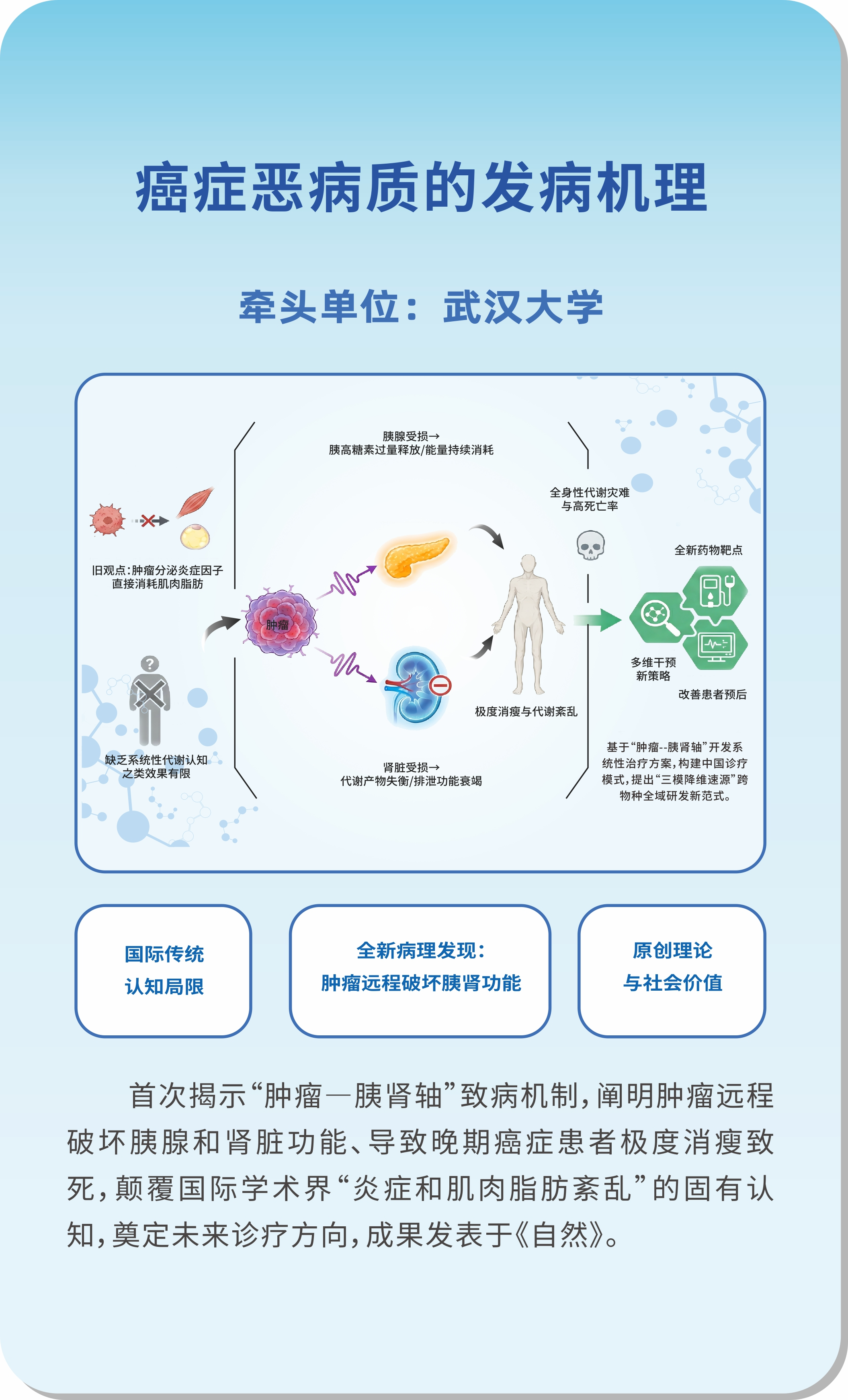 4. 癌症恶病质的发病机理研究:首次揭示“肿瘤-胰肾轴”致病机制,颠覆传统认知。
