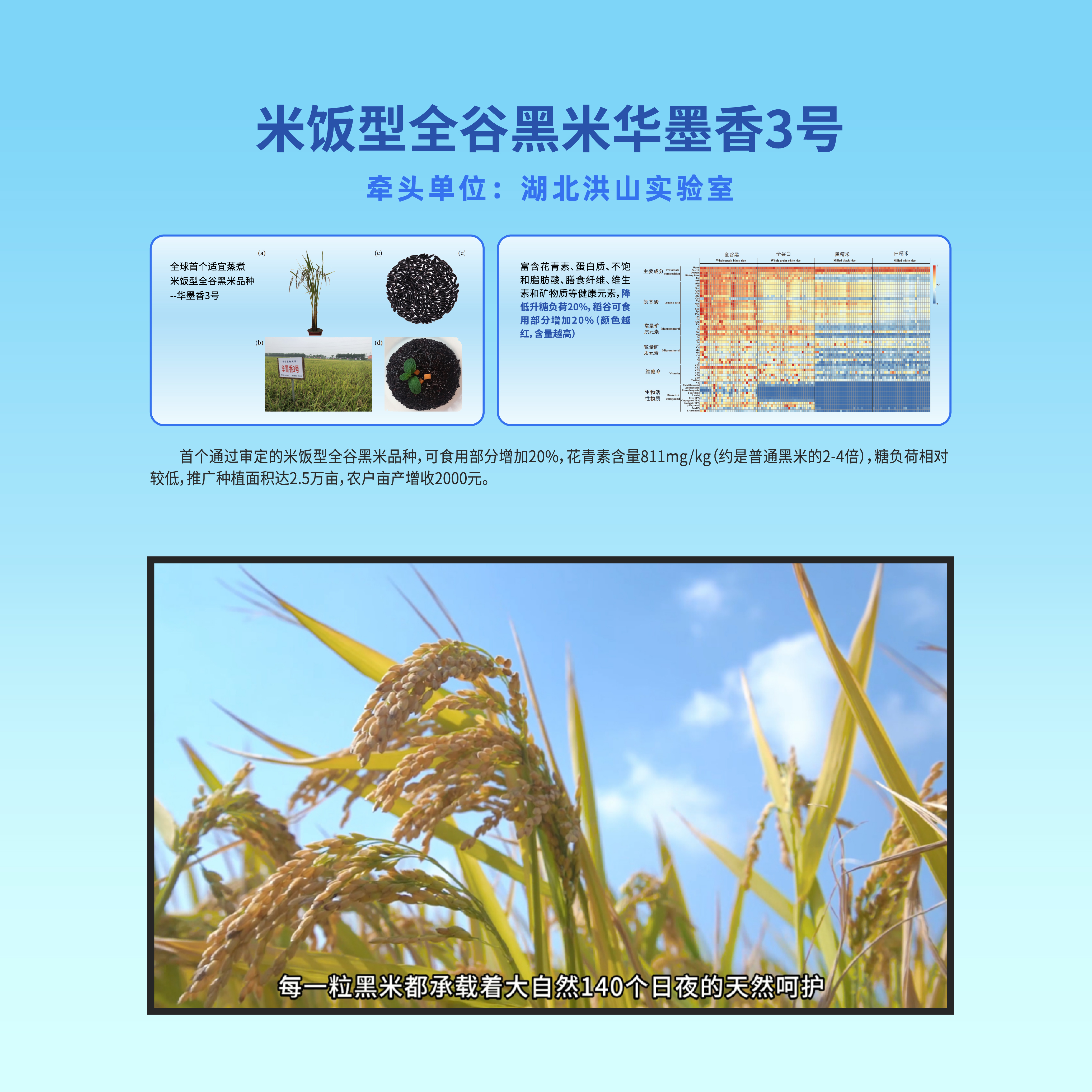 7. 米饭型全谷黑米华墨香3号:全球首个可蒸煮全谷米饭的米饭型黑米品种。
