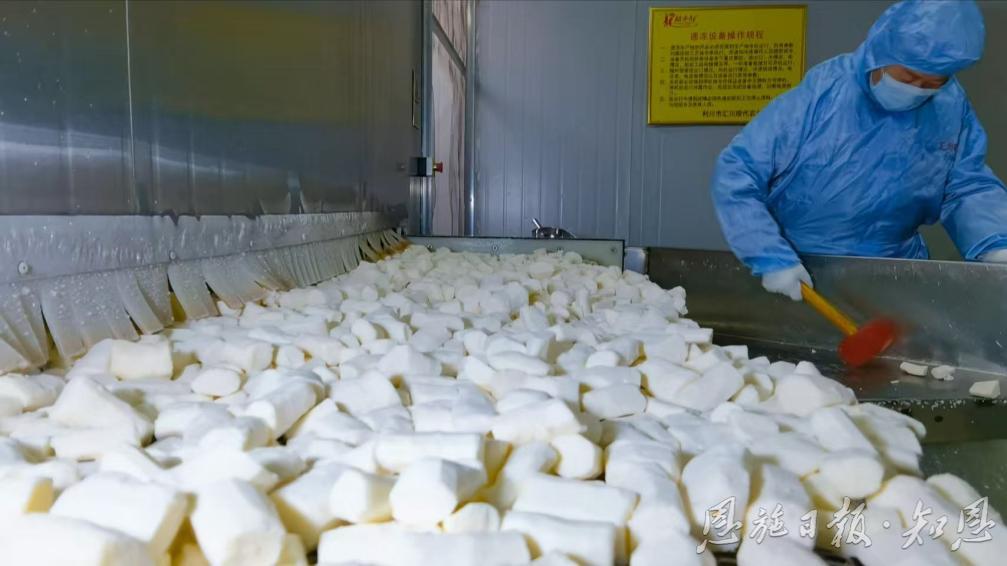 在恩施龙船水乡现代农业有限公司智能化车间里,生产线正高速运转。总经理刘河明拿起一颗洁白如玉、豌豆大小的产品介绍:“这是山药零余子,也叫山药豆。《本草纲目》记载其‘营养胜于山药’。过去常被丢弃,如今我们通过加工,让它成了高端餐饮市场的‘白玉福豆’。”