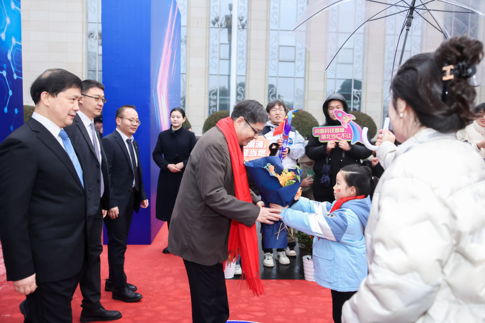 1月4日一早,湖北省武汉市的洪山礼堂外,红毯铺展,鲜花装点。薄薄晨雾、绵绵细雨中,早有人群在此守候。其中由学生和青年科技工作者组成的方阵格外醒目,他们手持标语,翘首以盼,眼中充满期待。今天,这里的主角是科学家。