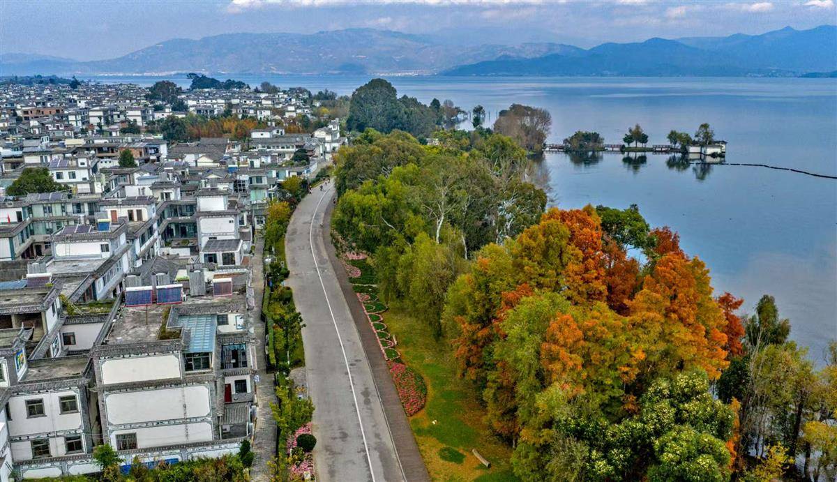 鸟瞰洱海和古生村。(湖北日报全媒记者刘曙松摄)