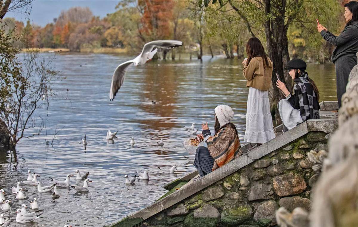 洱海边,游客和鸟和谐相处。(湖北日报全媒记者刘曙松摄)