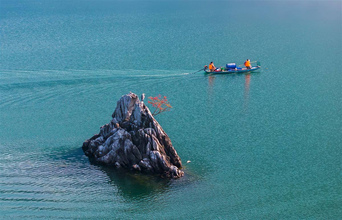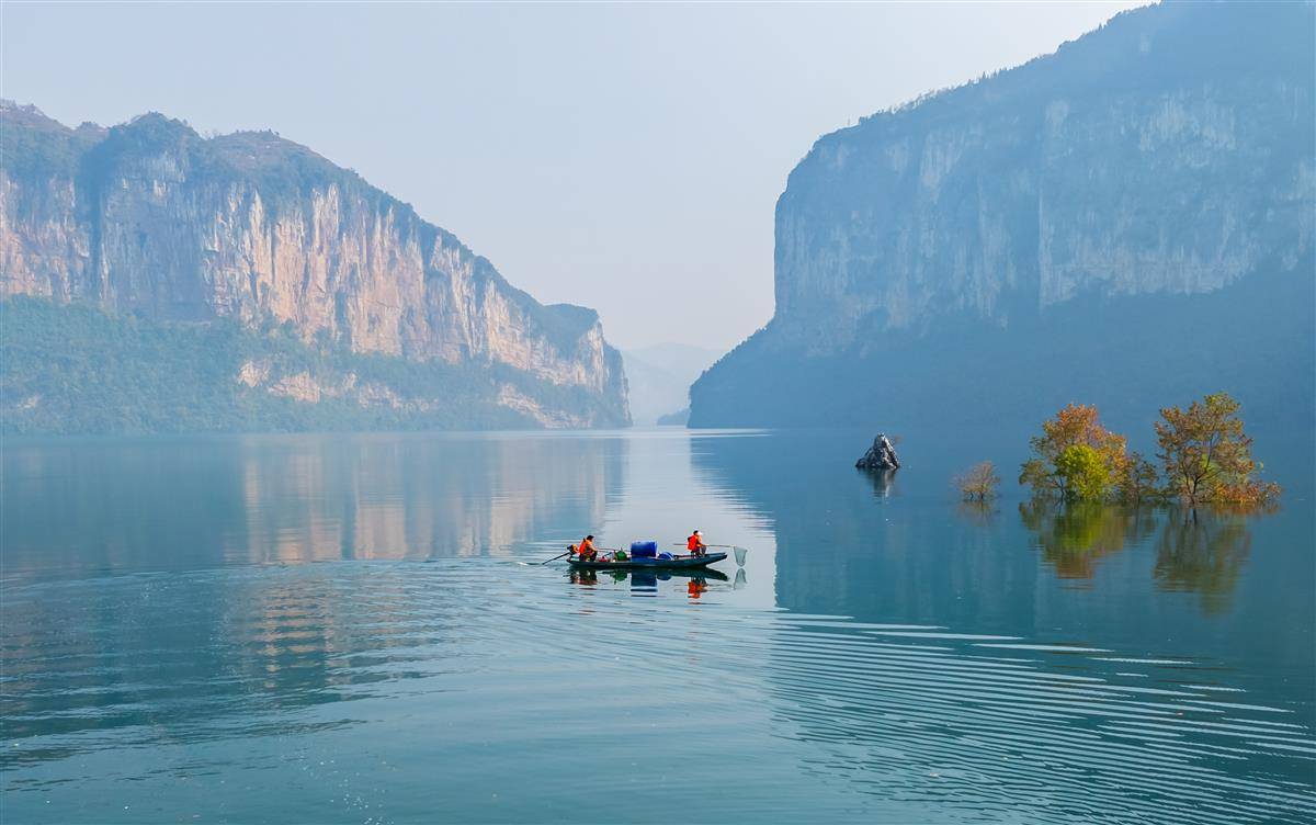 如今,杨清鑫和妻子每天都要在江上巡逻,一天下来,要在江上跑近20公里。夫妻俩的船行至东风湖峡谷段,两岸石灰岩陡壁耸入云天,连绵起伏似“大鹏展翅”。他们目光如炬,在江面上来回扫视,不放过任何一片漂浮的树叶、一个塑料瓶或是垃圾袋。