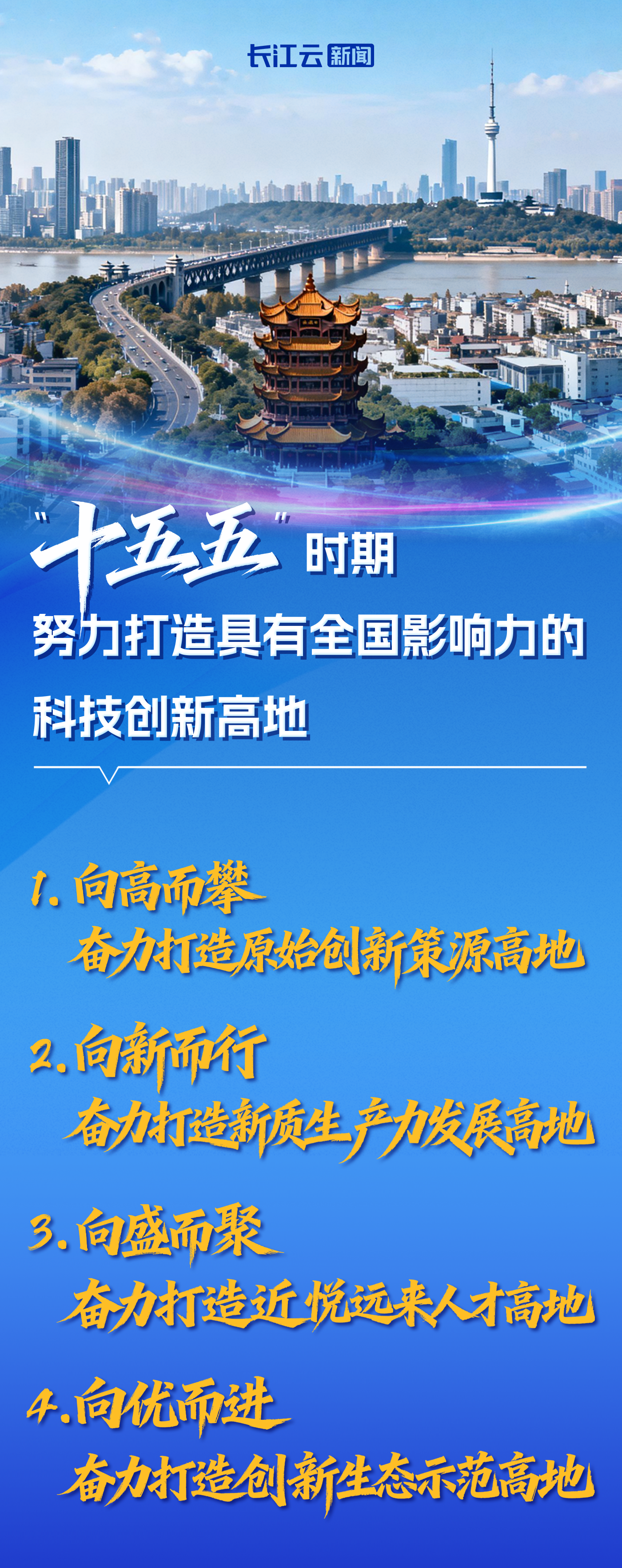 展望“十五五”,湖北将锚定“打造具有全国影响力的科技创新高地”目标,全力打造“四个高地”,在新征程上勇攀科技高峰。