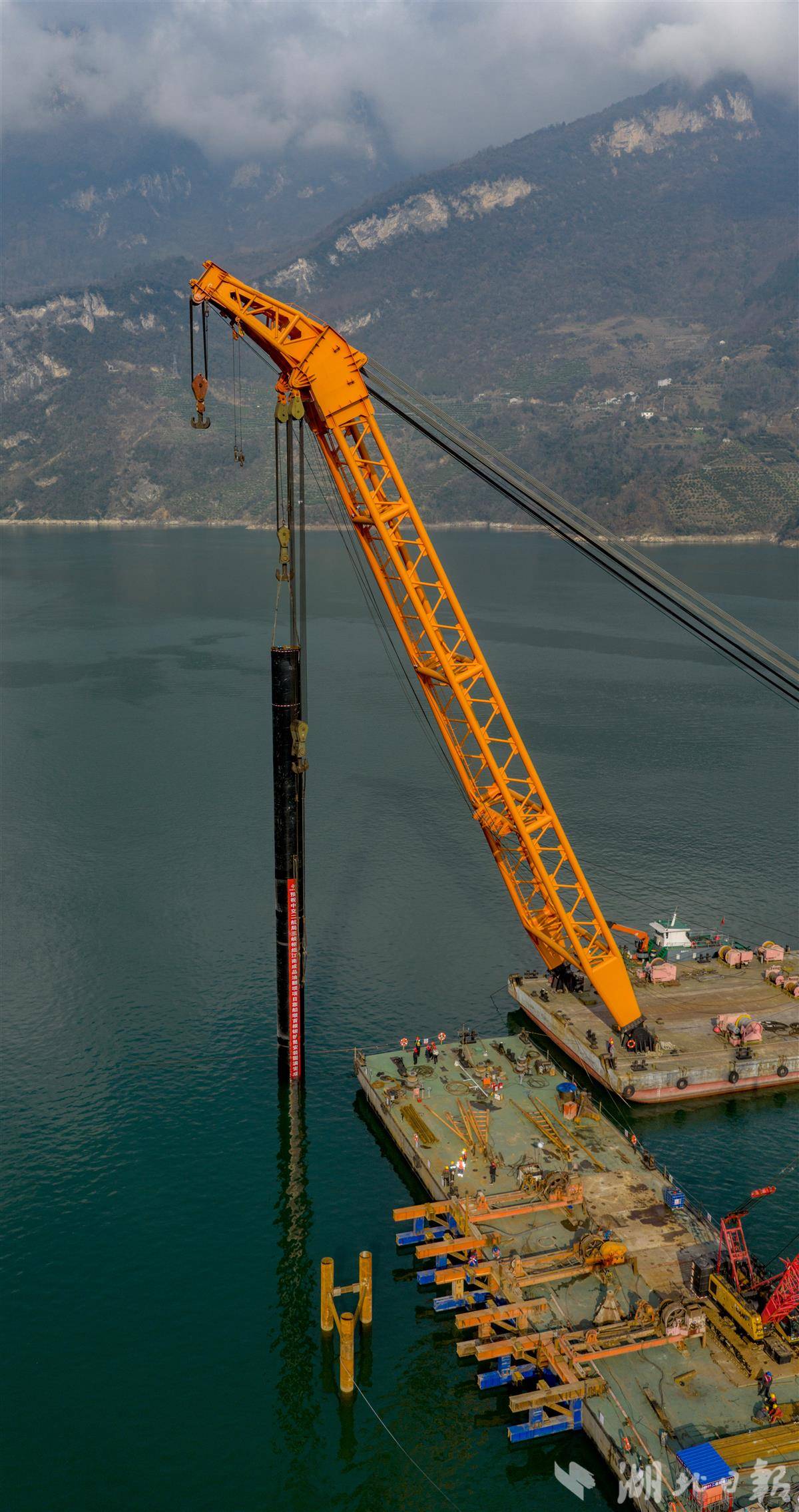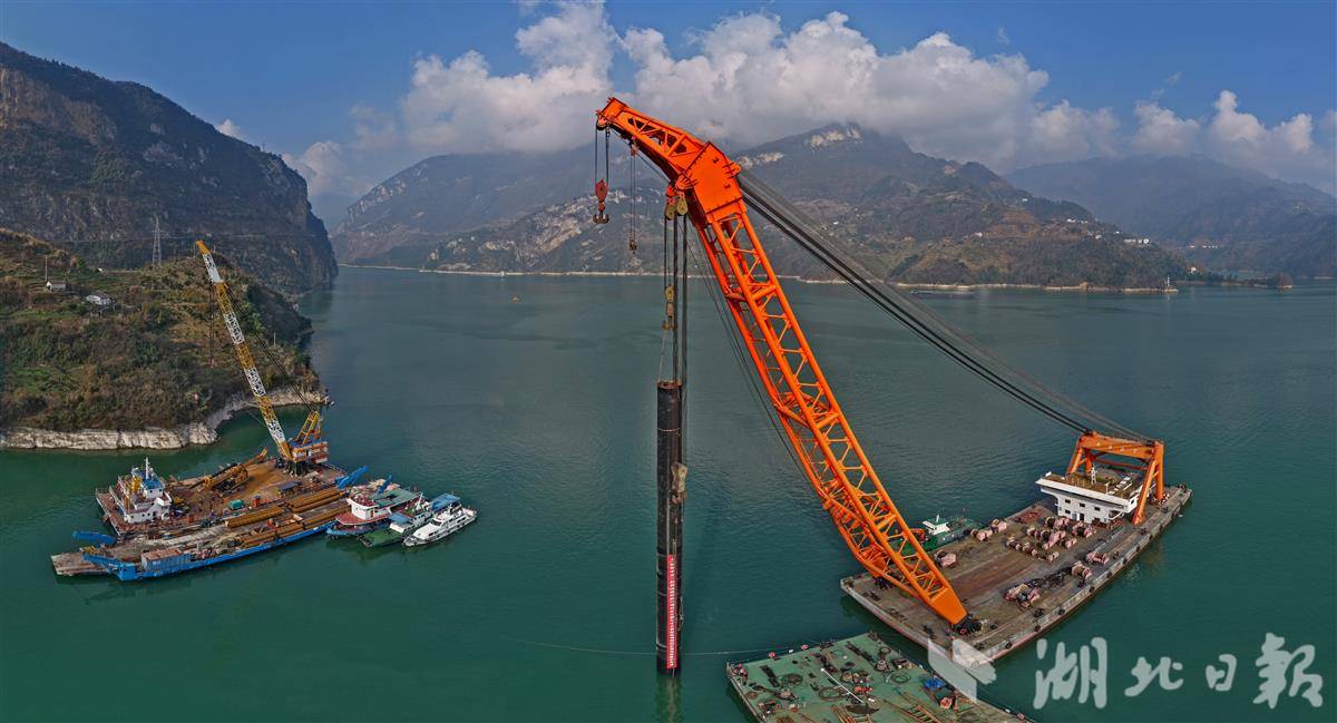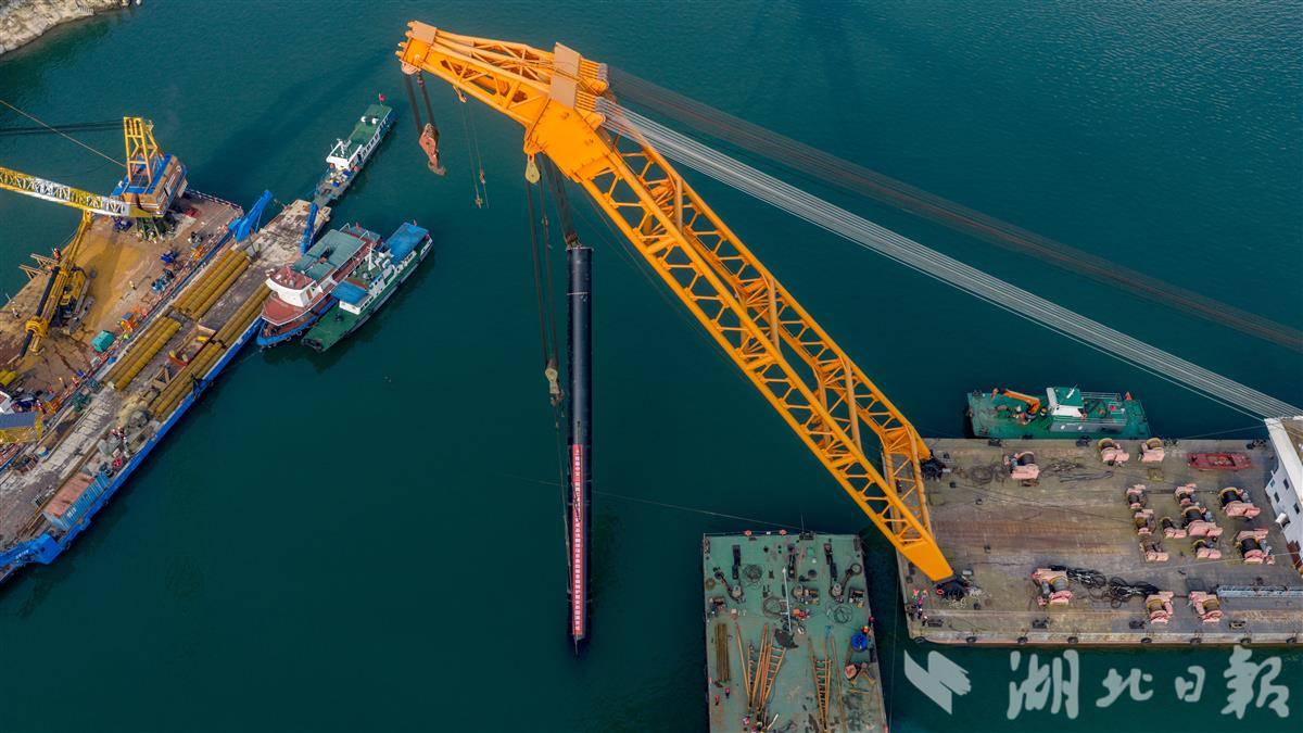 项目团队采用800吨起重船双钩起吊翻身方案,通过三维模拟推演化解空间受限风险;创新融合实时监测与动态调控技术,构建数字化立体监测体系,形成闭环控制,最终实现钢护筒毫米级精准安装。(湖北日报全媒记者 刘曙松 通讯员 彭强 摄)