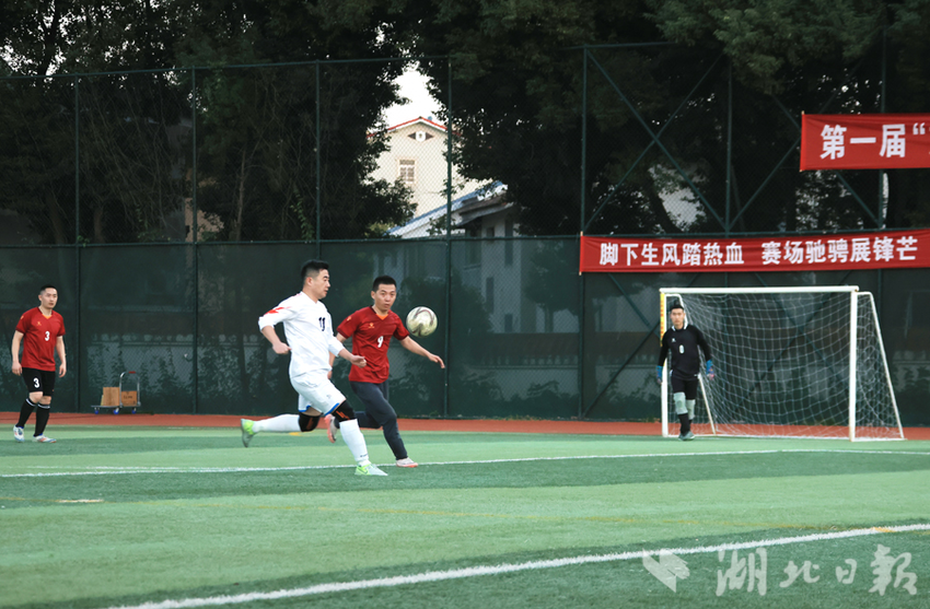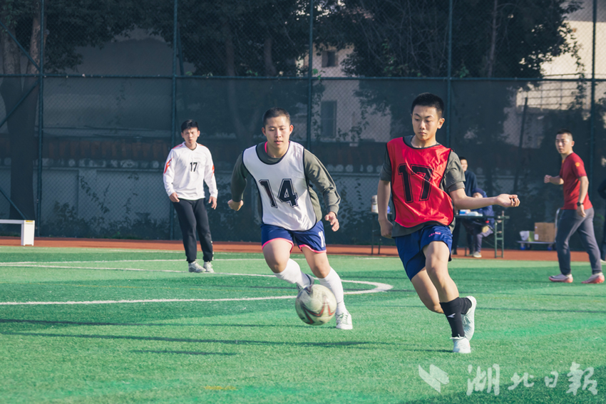 为丰富官兵业余生活,进一步增强部队凝聚力、战斗力,近日,信息支援部队驻鄂某部群众性足球联赛激战正酣。