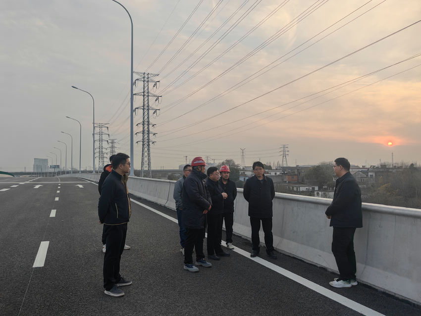 随后,曹小明一行前往二坝支线项目调研,详细听取了项目建设进度、通行准备情况及后续施工安排等工作的汇报,实地察看了高架桥梁通行条件。二坝支线(吴越路市政段)项目二标段是连接芜湖长江三桥与芜合高速的关键交通纽带,自开工以来,项目团队克服管线迁改复杂、交叉作业密集、工期紧张等多重挑战,目前项目已进入收官阶段,杭州路以北地面辅道已全面放行,计划本月底实现全线通车,通车后将有效缓解吴越路交通拥堵,实现芜合高速、长江三桥、过江隧道互联互通,大幅提升江北新区对外通达能力,为区域产业协同发展和长江经济带建设提供强劲交通支撑。