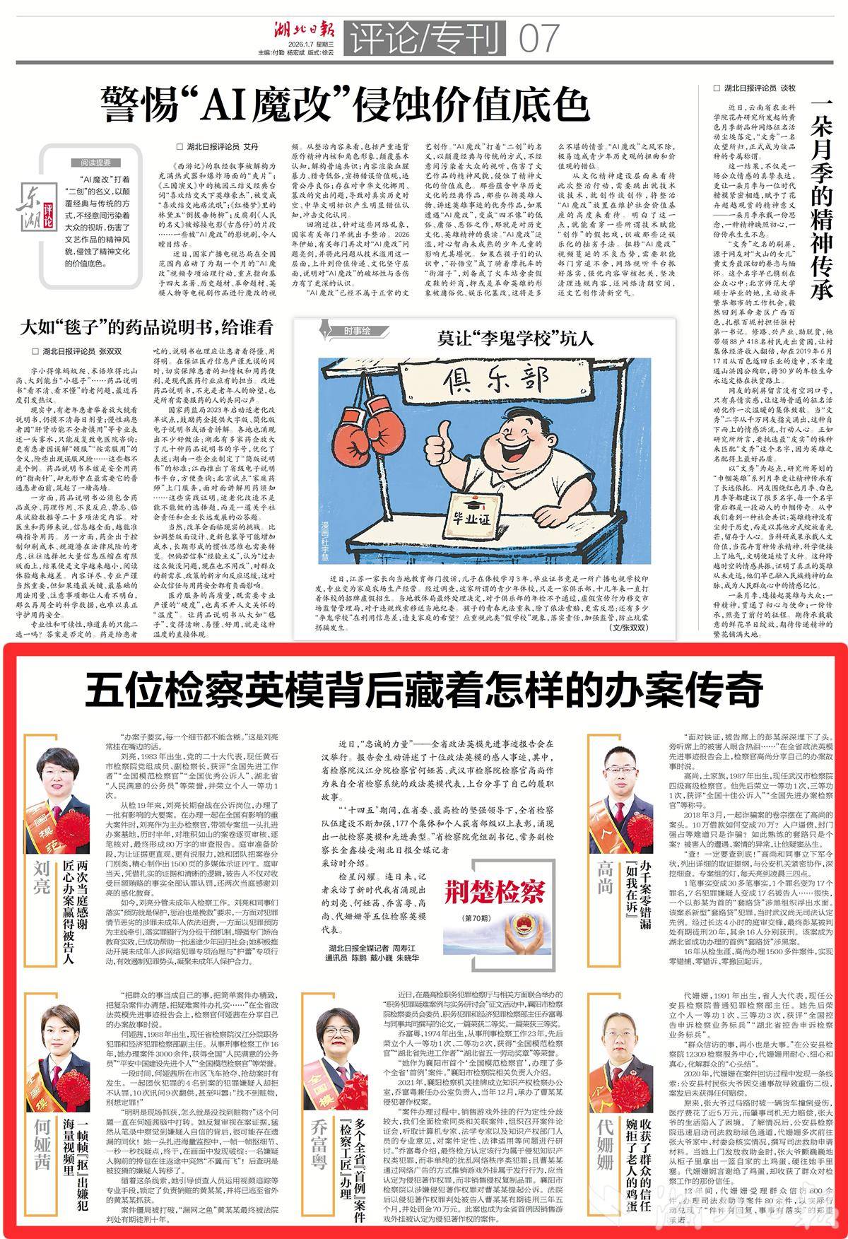 “‘十四五’期间,在省委、最高检的坚强领导下,全省检察队伍建设不断加强,177个集体和个人获省部级以上表彰,涌现出一批检察英模和先进典型。”省检察院党组副书记、常务副检察长金鑫接受湖北日报全媒记者采访时介绍。