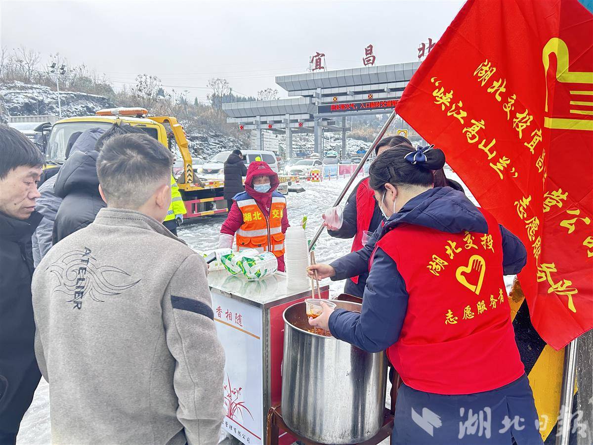 “师傅,喝口热水,往重庆方向山区路段,路况比较复杂,您们要开慢点注意安全。”1月3日,在G42沪蓉高速宜昌北收费站旁的“兰心惠宜”工会驿站内,志愿者李姿臻将一杯热气腾腾的水递给风尘仆仆的货车司机王师傅,带着弟弟跑长途的王师傅,在这里找到了短暂的温暖与安心。
