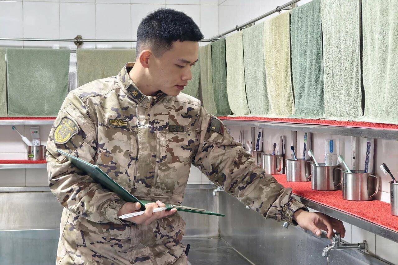 每天晚饭后,安全员都会走遍营区:插座充电器有没有断电,水龙头有没有滴水,库房里有没有隐患……营区的每一个角落,都留下了安全员的脚步。他们时刻提醒着每一名官兵:省下一度电、一滴水,都是为战斗力添砖加瓦,节约无小事,点滴助强军。