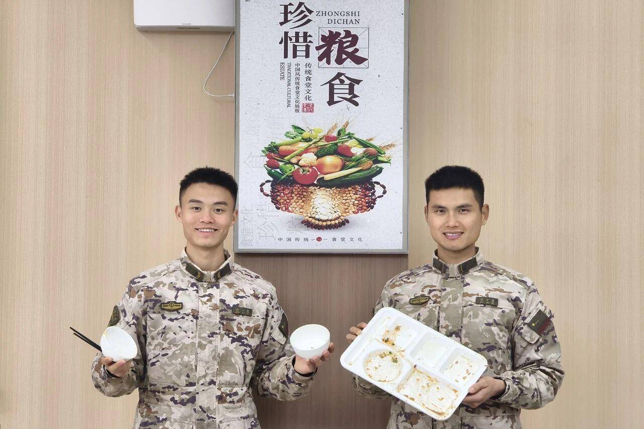 食堂里,中队改变“一份饭定分量”的模式,通过推行分餐制,把“吃多少打多少”的选择权交到官兵手上,把“按需取餐、杜绝浪费”的理念落到具体行动中。炊事班定期收集伙食意见,从源头上实现光盘行动。