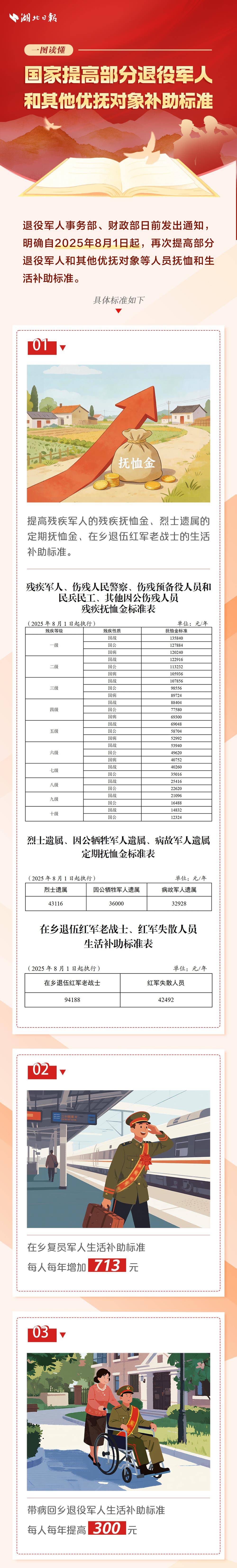 再次提高部分退役军人和其他优抚对象