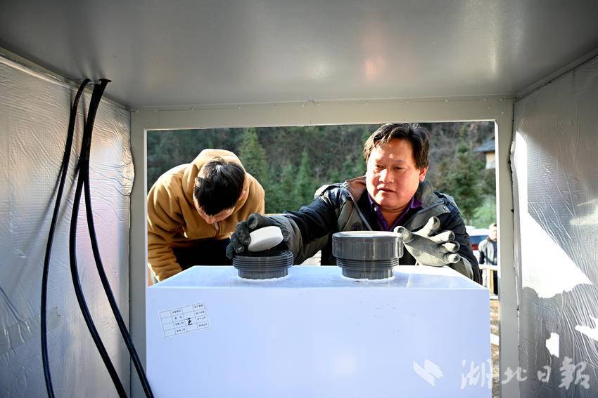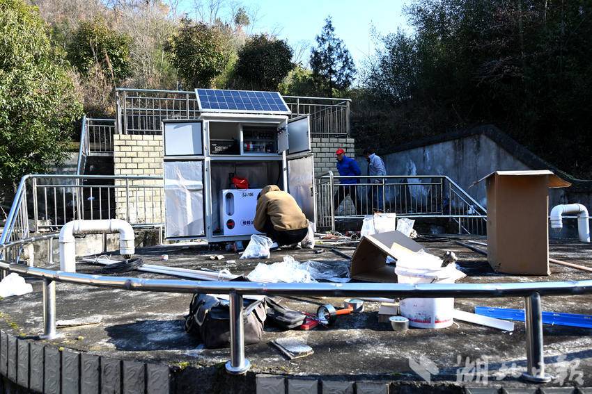 图为1月7日,施工技术人员在十堰市郧阳区五峰乡下三岔村水厂安装小型自动化加药消毒设备。