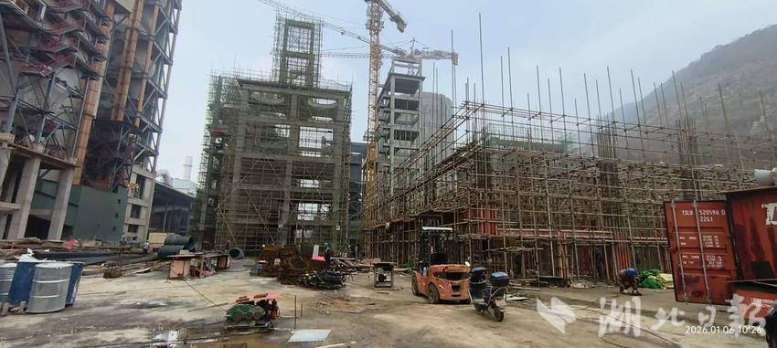 湖北日报讯(通讯员文建华)小寒时节,天寒地冻。1月7日,在武穴市田家镇街道的黄冈亚东水泥第二期熟料生产项目现场是一片繁忙。大型吊车往来吊运钢材,施工人员有的在框架上焊接钢筋、有的在绑扎钢筋,整个工地建设如火如荼,呈现出策马扬鞭、奔腾不息的奋进态势。