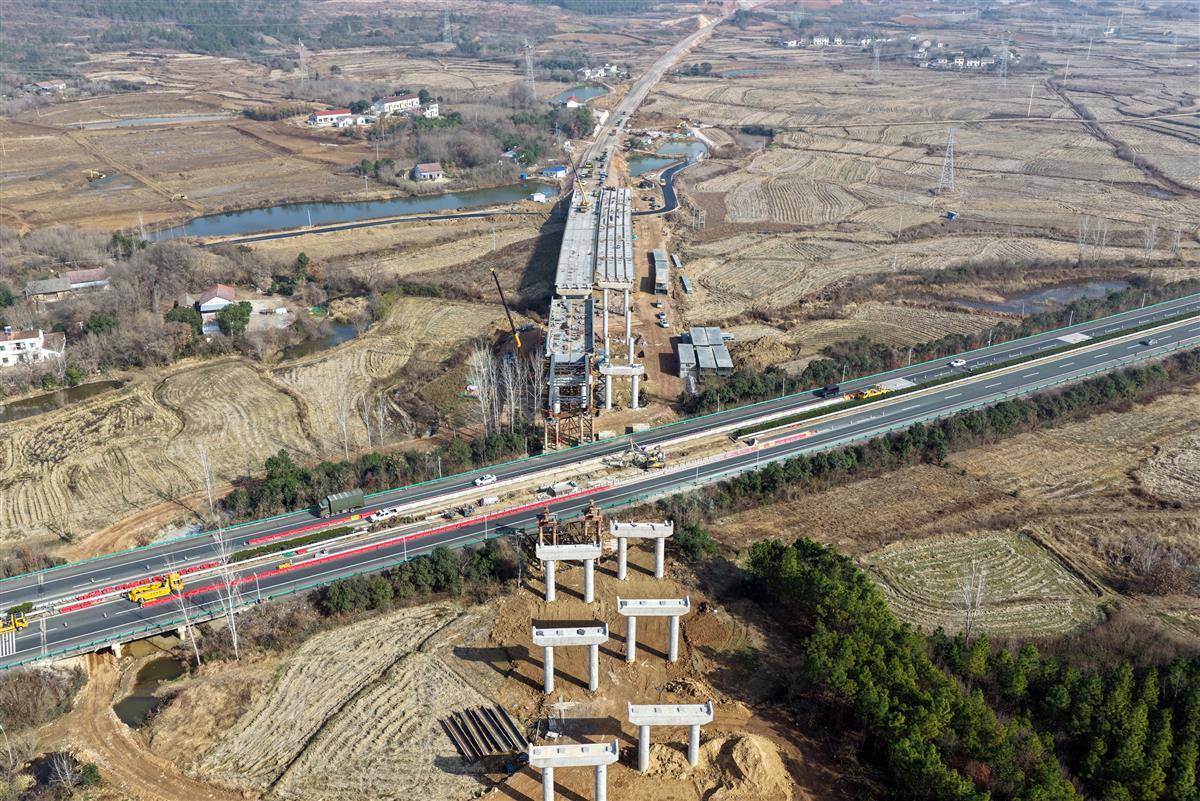 1月5日,沿江高铁京山连接线项目建设现场,机械轰鸣。桥面上,工人李师傅与工友们正进行最后阶段的铺装。“加把劲,春节前一定要通车!”他抹了把汗,“到时候,老乡们坐高铁进城就更快了!”