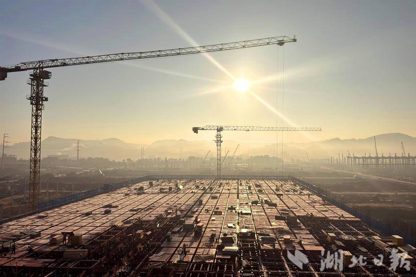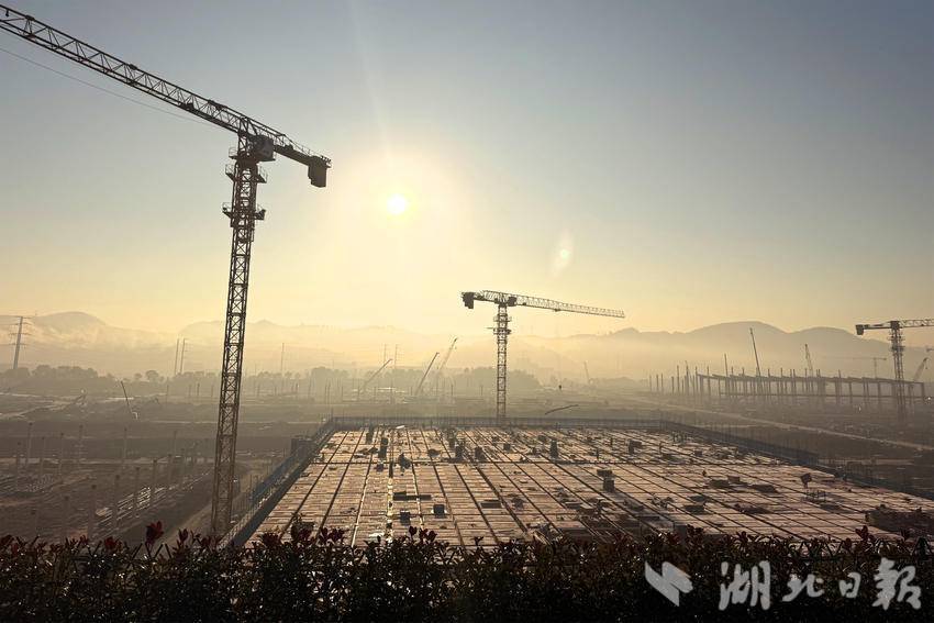 湖北日报客户端讯(通讯员谢小青)2026年1月7日,位于宜昌市夷陵区龙泉镇的楚能新能源(宜昌)锂电池产业园项目二期建设现场,清晨朝霞中的施工工地机器轰鸣、车辆穿梭,呈现热火朝天景象。