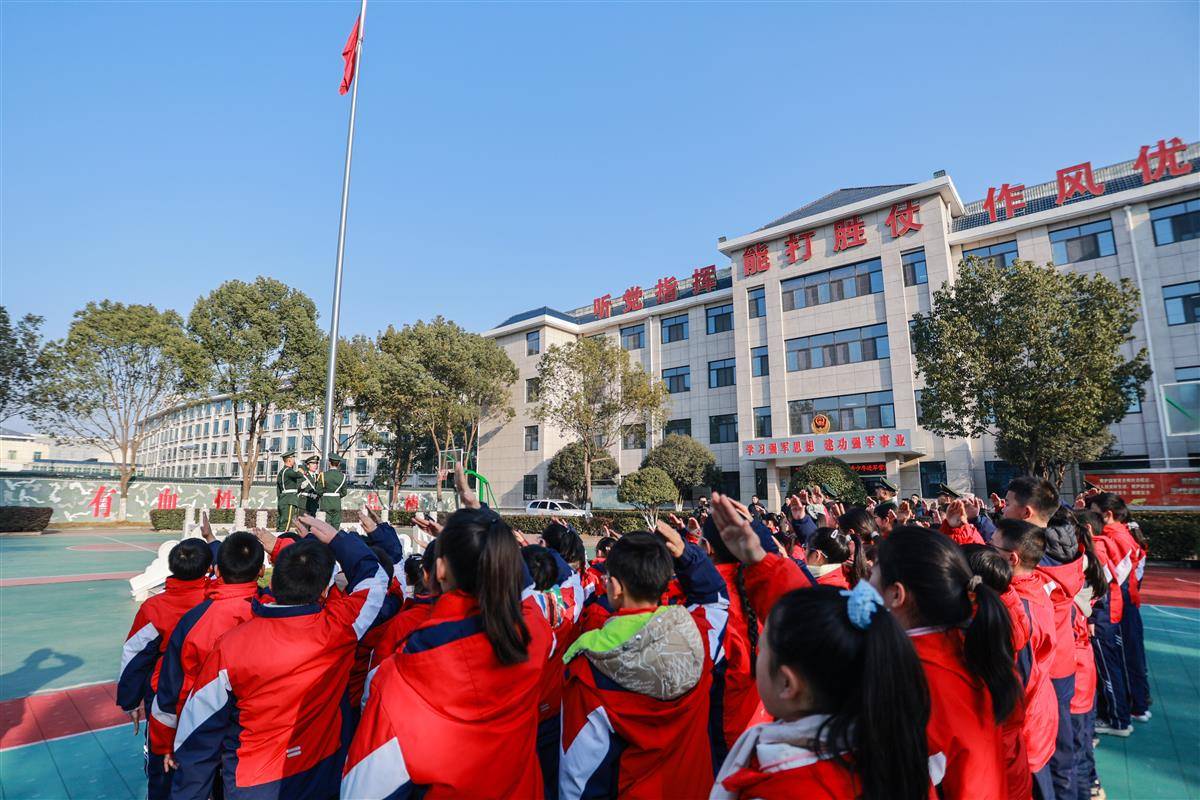 在军营广场,五星红旗冉冉升起,师生们挺直腰板,凝视着飘扬的国旗,在雄壮的国歌声中感受着国家的庄严与神圣,简短而庄重的升旗仪式为活动拉开序幕。