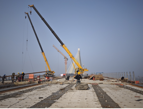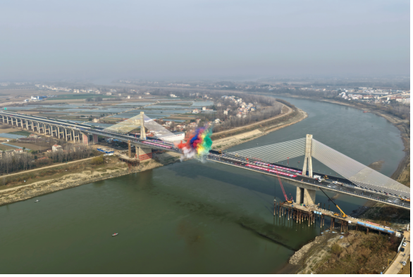 武天高速武汉至汉川段汉江特大桥沥青铺设 杨丽芳 摄