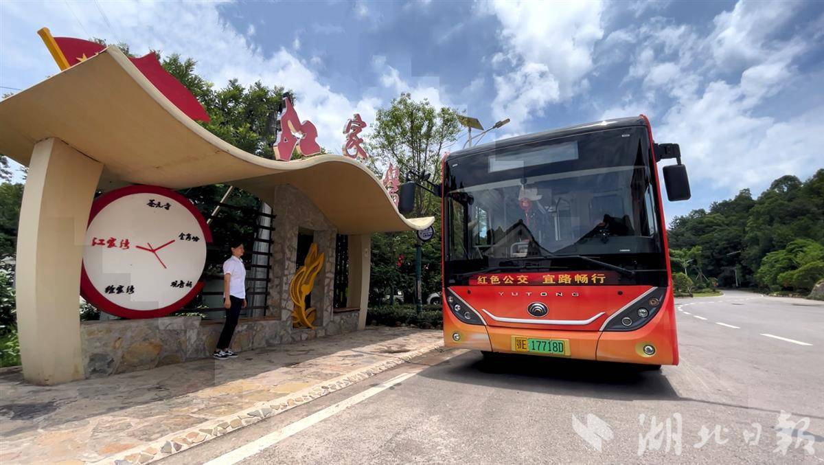 在宜昌市宜都市,公交车开进江家湾,而波浪造型的候车亭也别有新意,引来不少游客拍照打卡。它不仅为群众遮风挡雨,也成为当地传播红色文化的阵地。