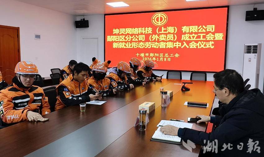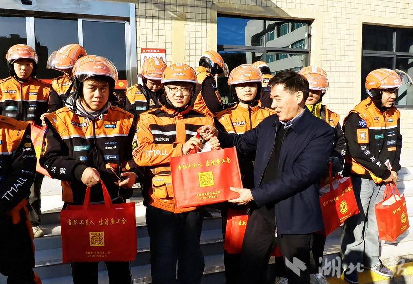 1月8日,湖北省十堰市郧阳区外卖小哥在区总工会选举工会主席,建立工会组织,成立职工之家,郧阳区总工会为外卖小哥赠送生活礼物,让他们在辛苦的劳动中,感到家的温暖。