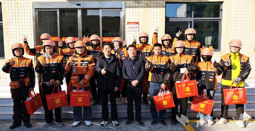 图为2026年1月8日,外卖小哥成立工会接受礼物时的情景。