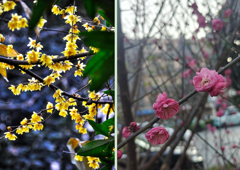 目前,武汉植物园内蜡梅已进入盛花期,金涛香海暗浮动。小梅园中宫粉梅、江梅、朱砂梅等品种也悄然展颜,为冬日铺开一幅“双梅竞艳”的诗意画卷,目前正是闻梅香、赏梅景的最佳时机。